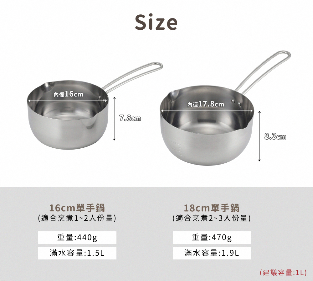 ■滿水容量:16cm款/1.5L、18cm款/1.9L(建議容量:1L)