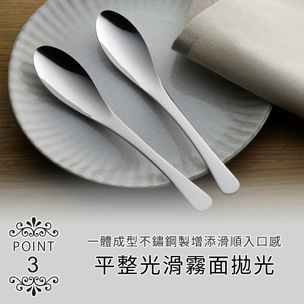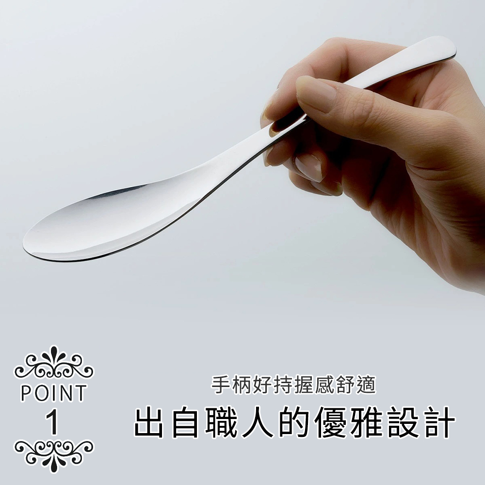 由職人們精心設計打造,兼具實用與流線型美感的餐食器具,窄細面淺身,正好是可以放進嘴裡的大小。