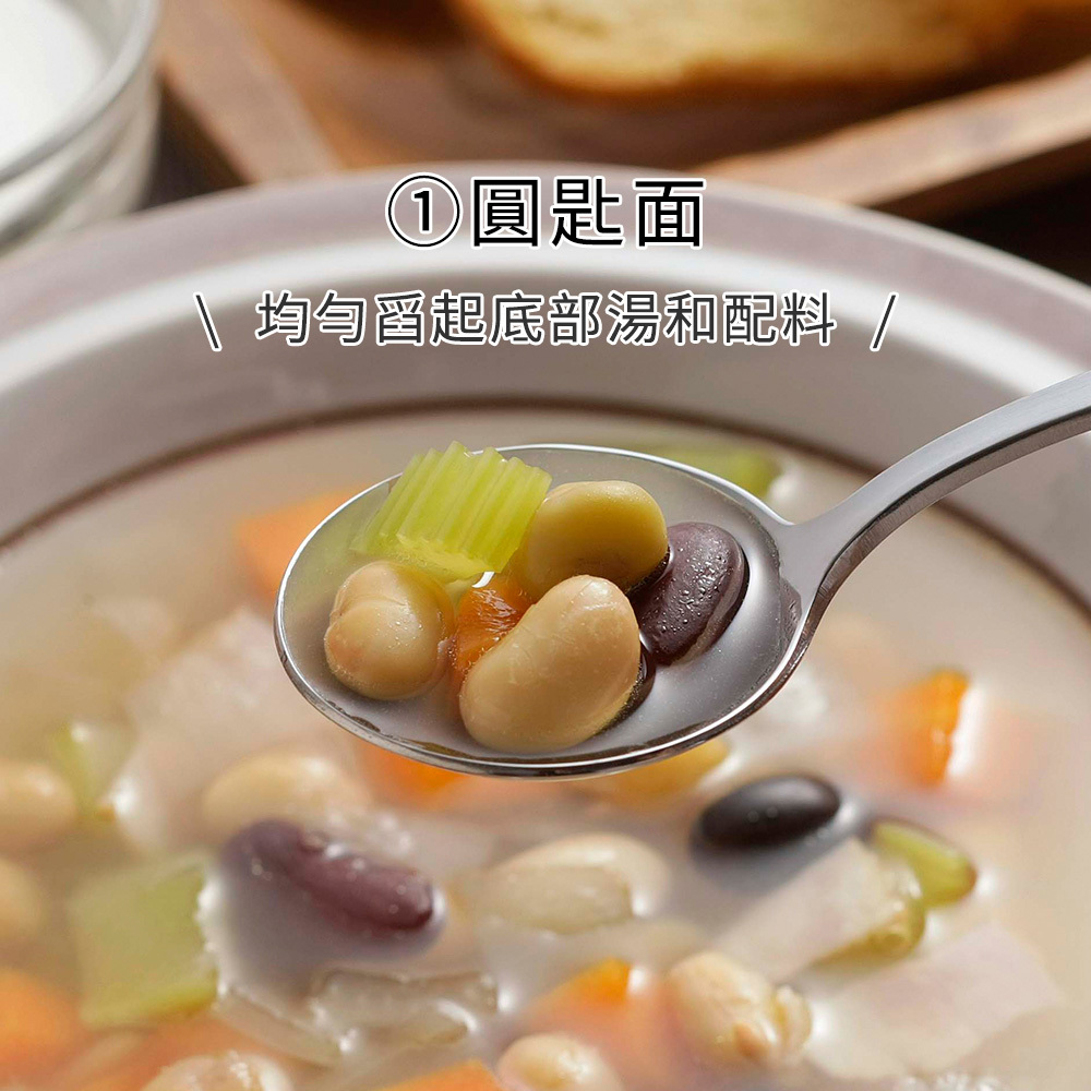 ■圓形匙面可均勻舀起底部湯和配料