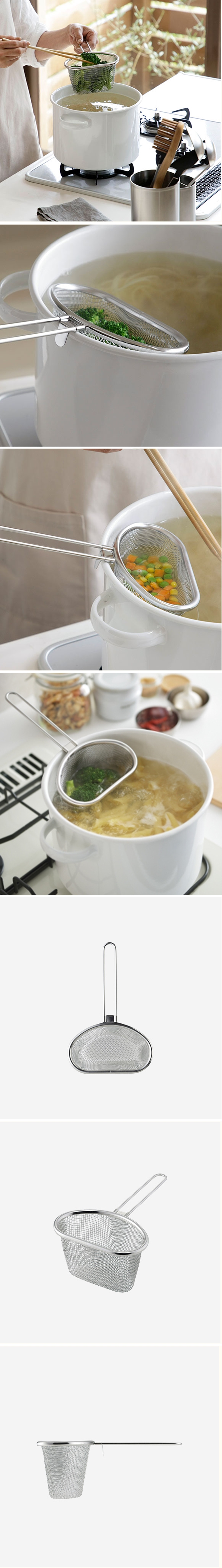 ■適用14公分以上的鍋具,握柄前端掛勾設計,可將漏勺掛於鍋邊調理,省時省力。