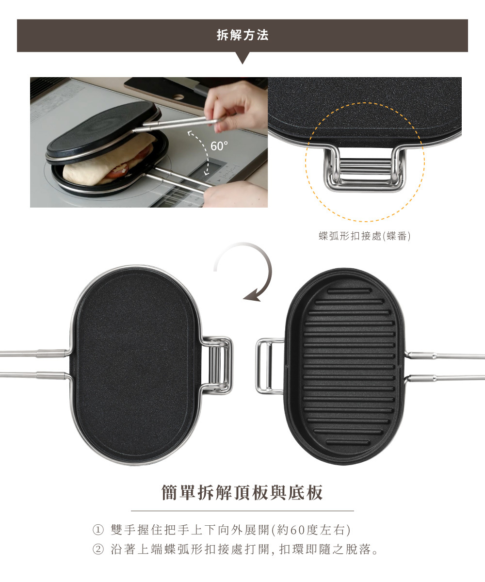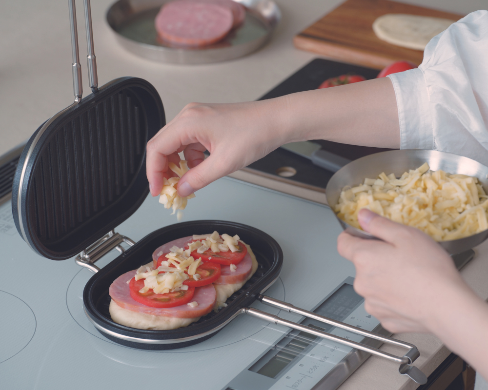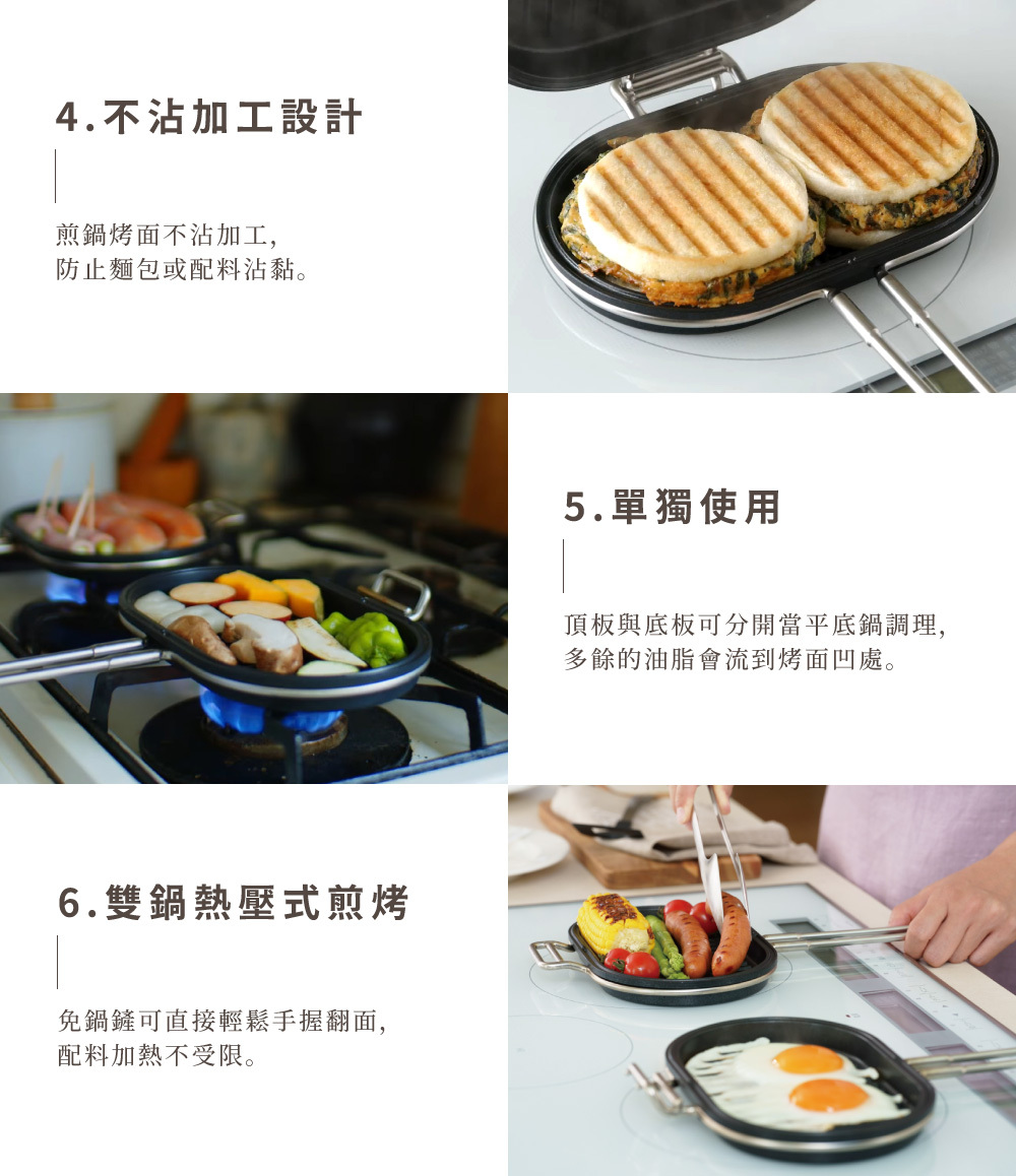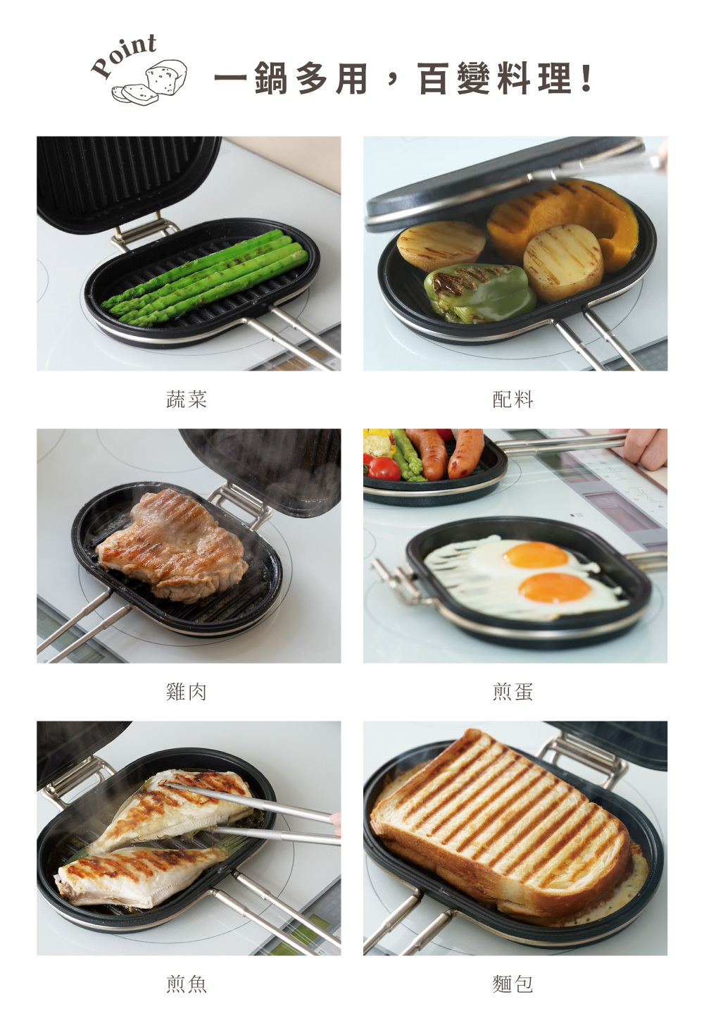 無間隔寬面烘烤鍋底,各式各樣的吐司麵包皆適用。可放入自己喜歡的食材,輕鬆完成屬於自己口味的熱壓帕尼尼三明治。