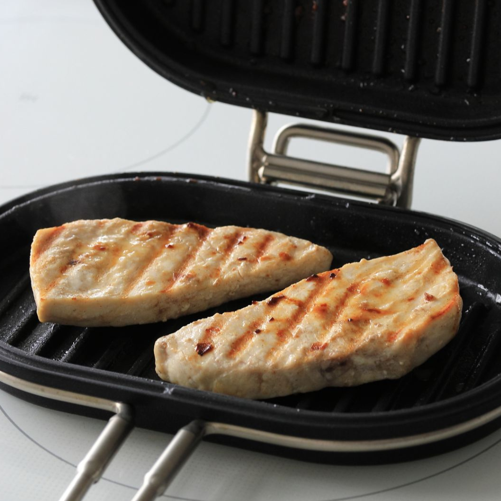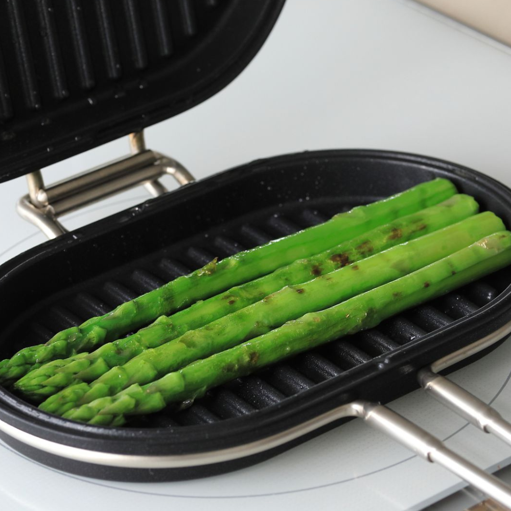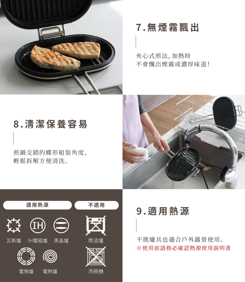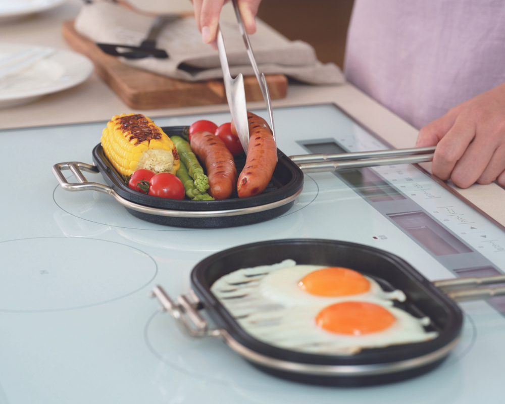 鍋底的波浪狀設計,提升熱傳導率速度,烘烤出香脆口感且鮮嫩多汁的美味料理。連烤雞、烤茄子或烤魚等煎烤料理也適用。