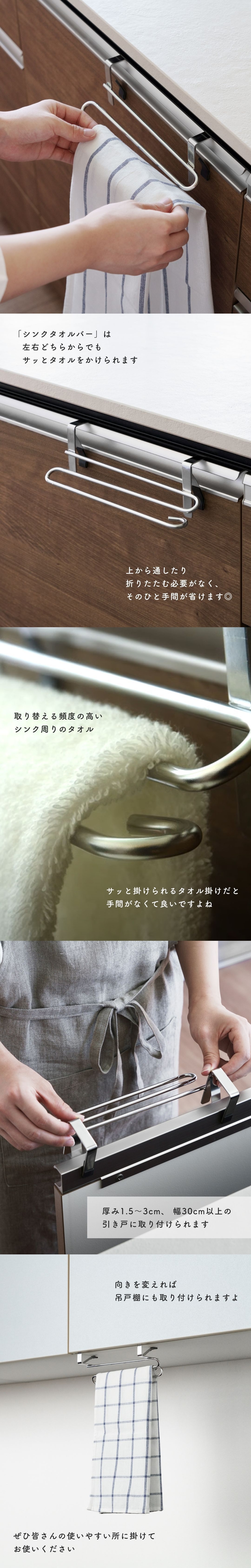 ●可於兩側迅速懸掛毛巾、抹布等,透過掛架間隙保持通風快速乾燥。