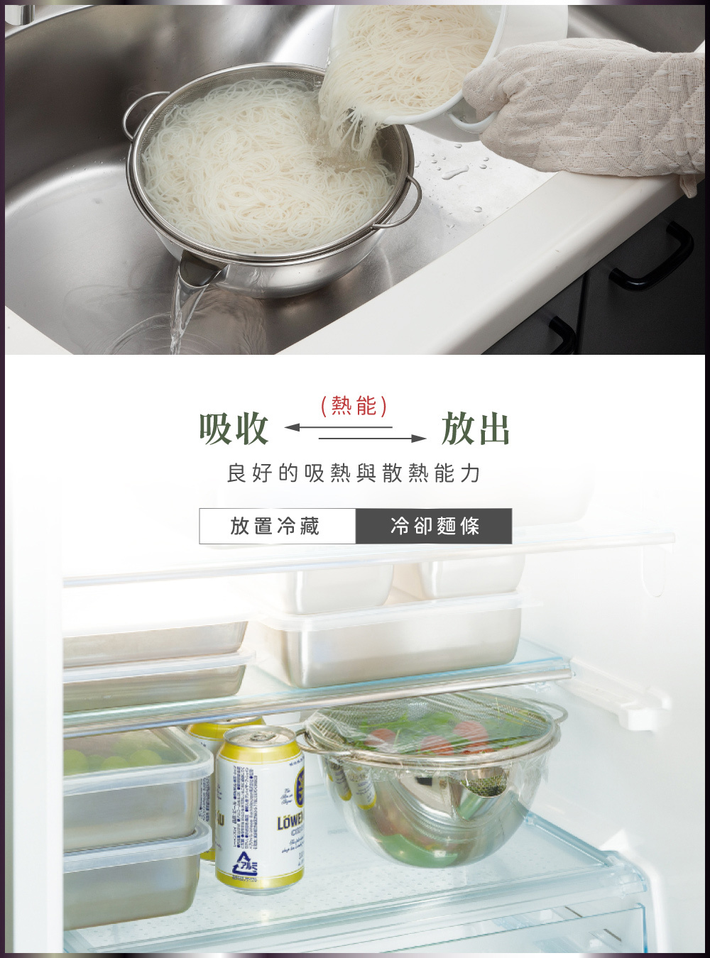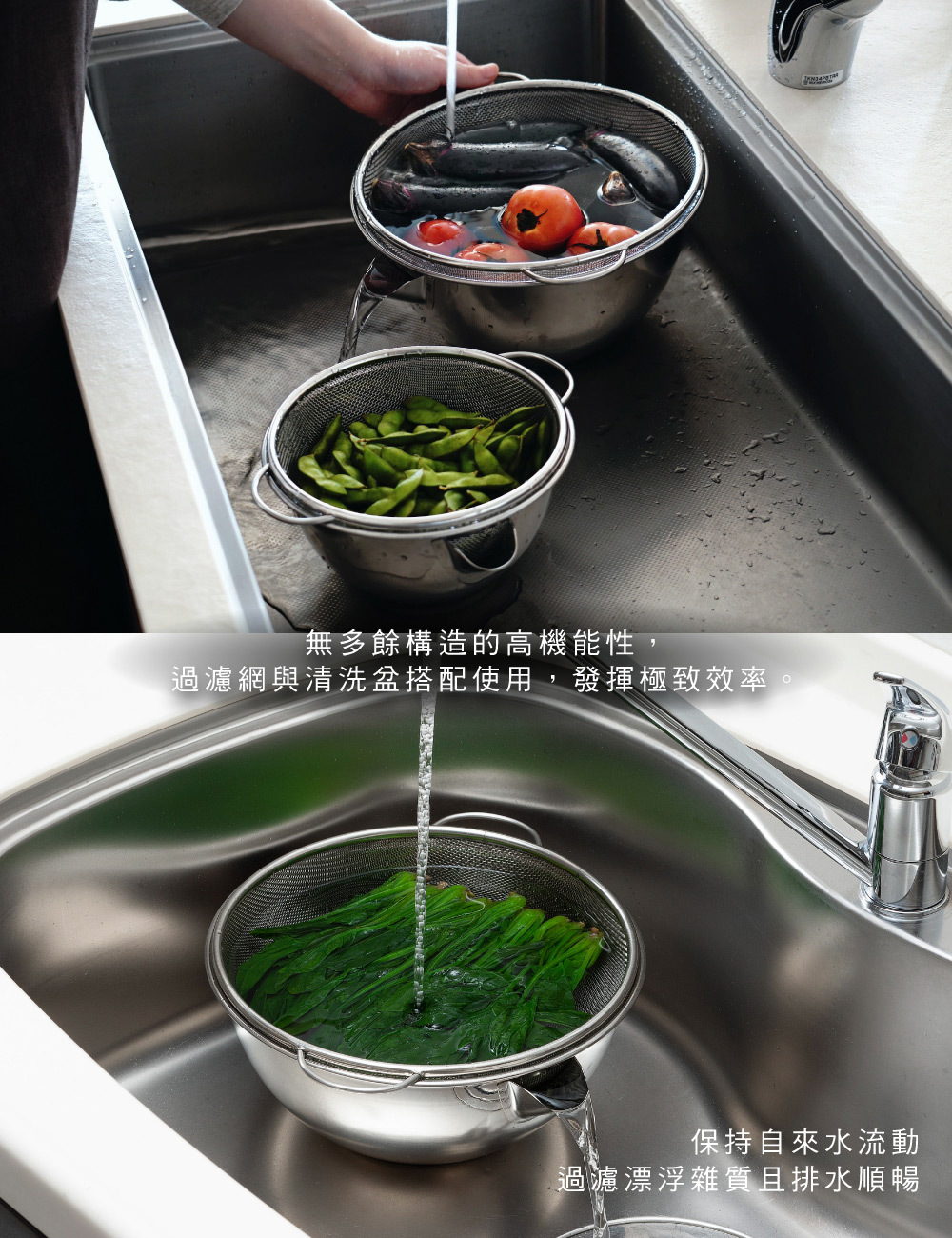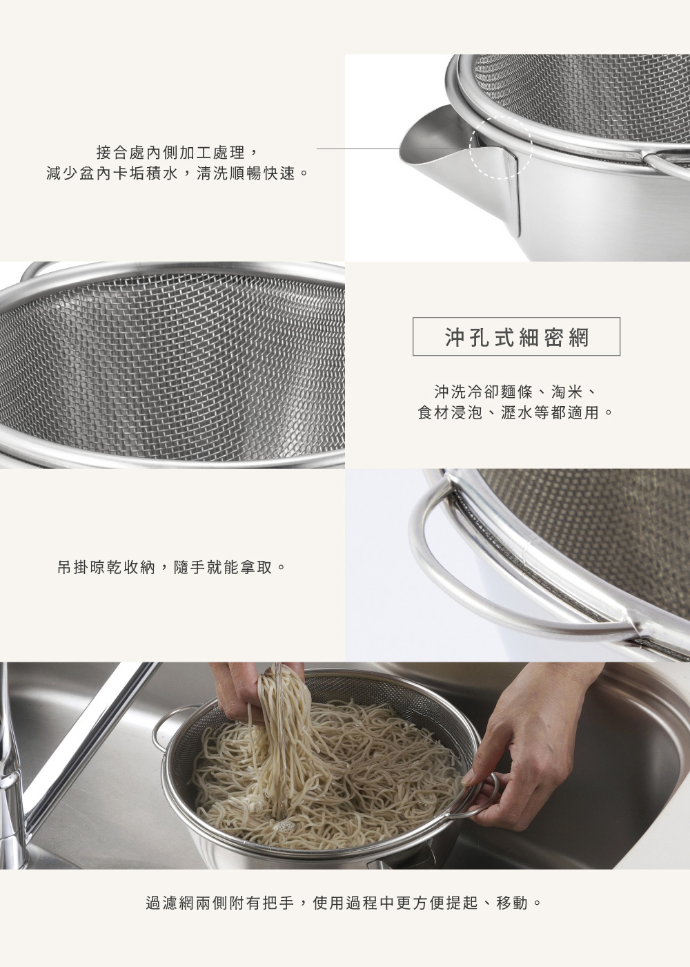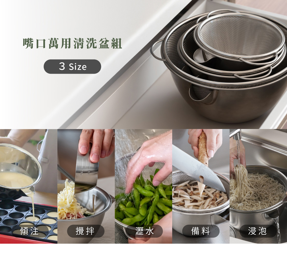 ■可用於沖洗冷卻麵條、淘米、食材浸泡、瀝水等。