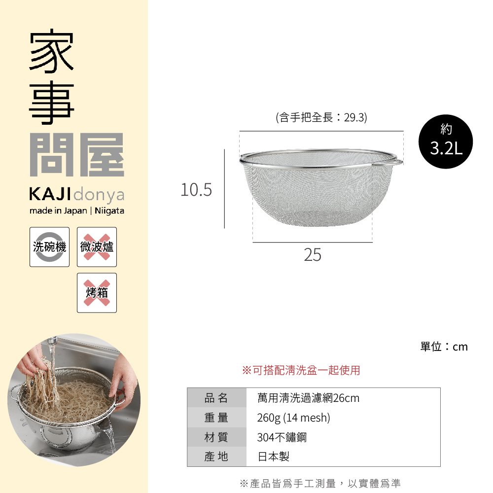 ■適用於1296500756-00《家事問屋》日本製304不鏽鋼嘴口設計萬用過濾清洗盆組 26cm。