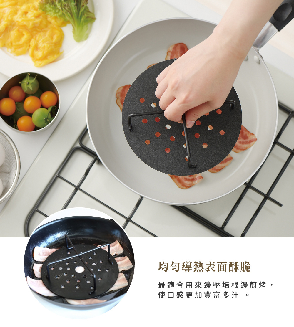 ●最適合用來邊壓培根邊煎烤,把表面煎得脆脆的,口感更加豐富多汁 。