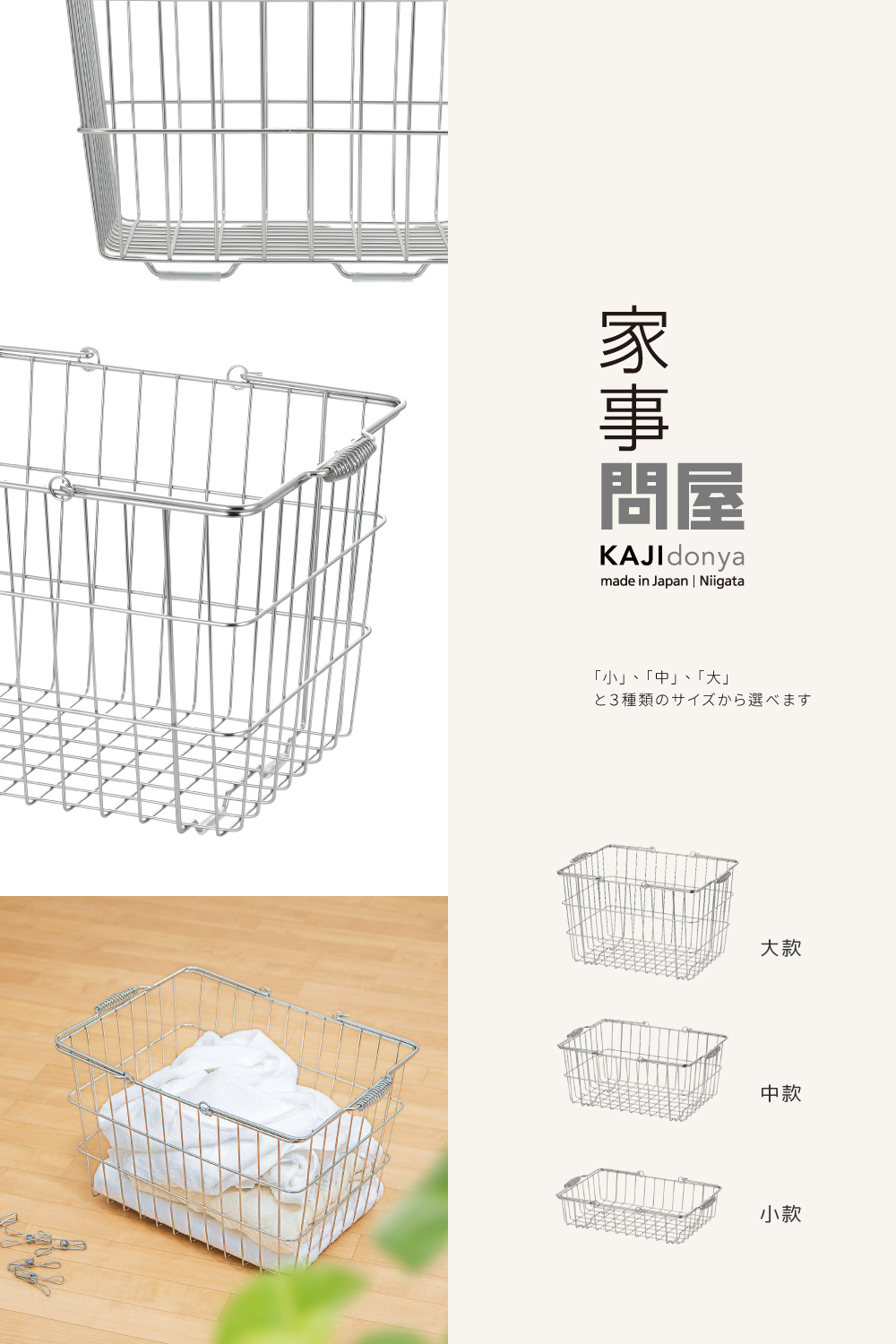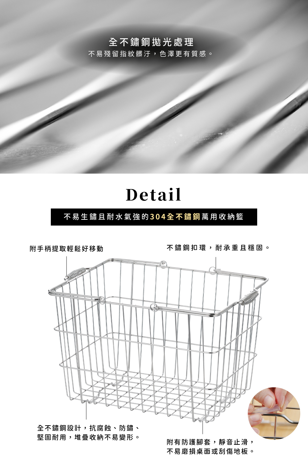 ●不易生鏽且耐水氣強的全不鏽鋼萬用收納籃。