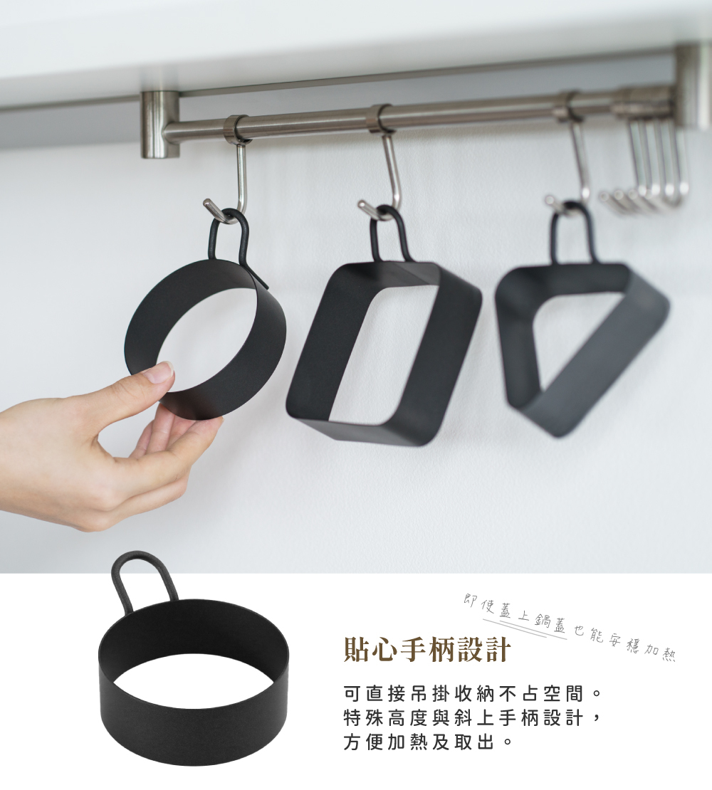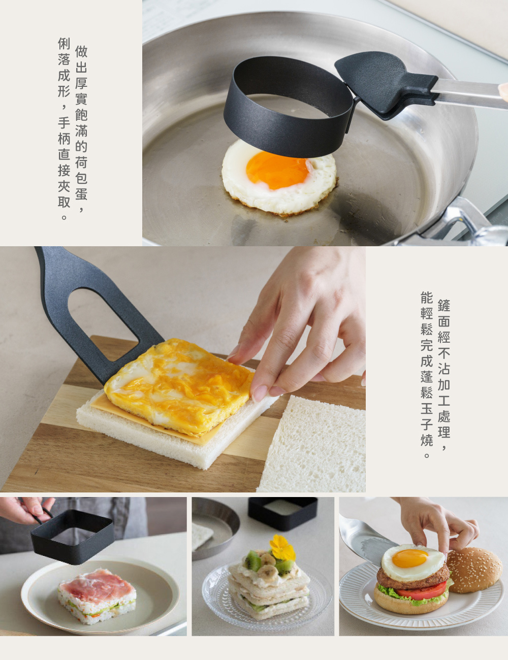 可以做出圓形且厚實的荷包蛋。手柄設計方便拿取。