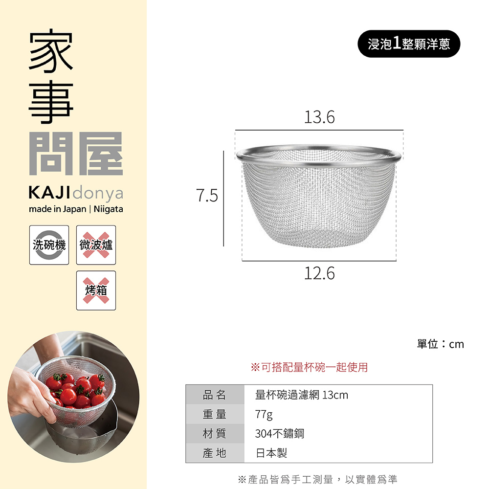 13cm規格,適合浸泡過濾1整顆洋蔥。