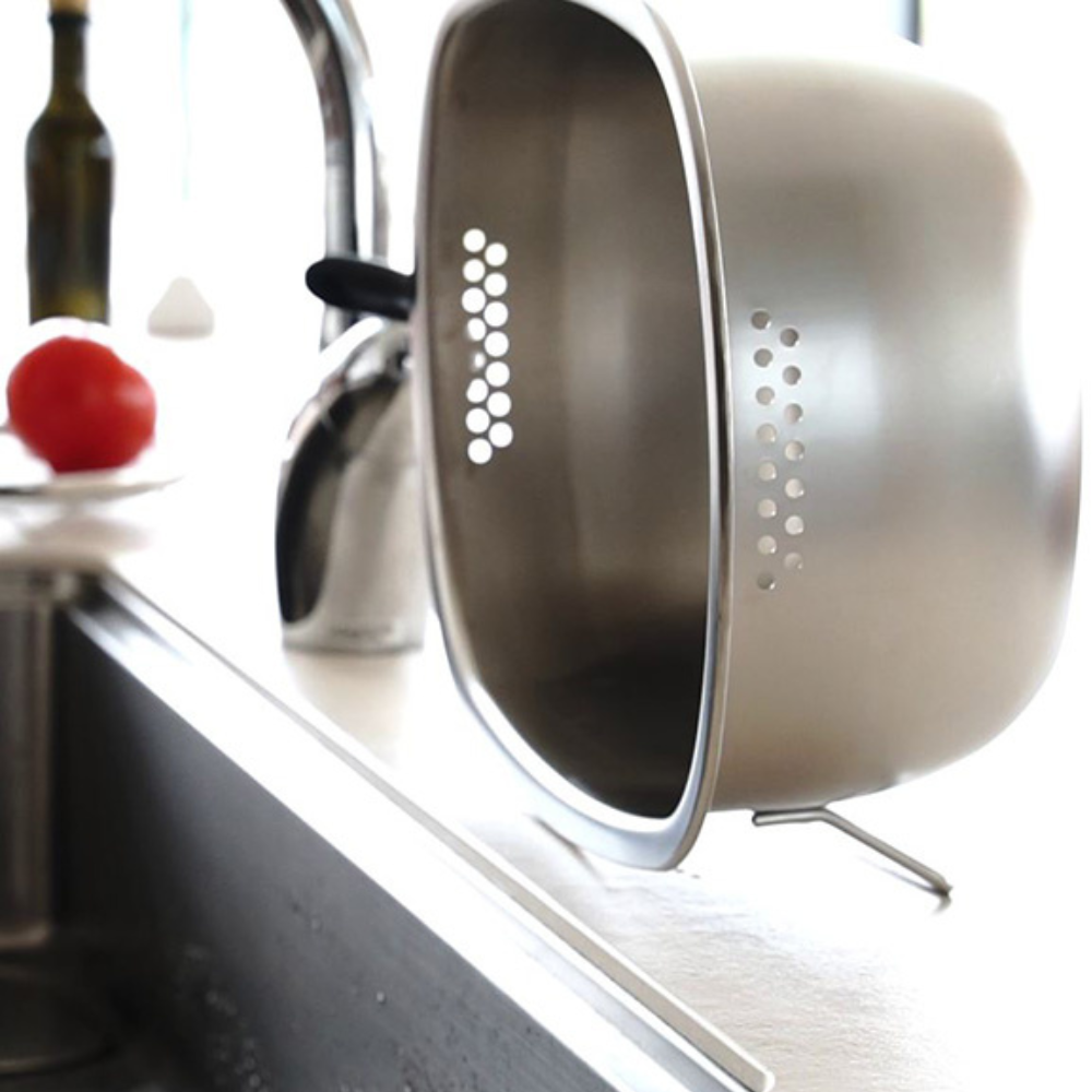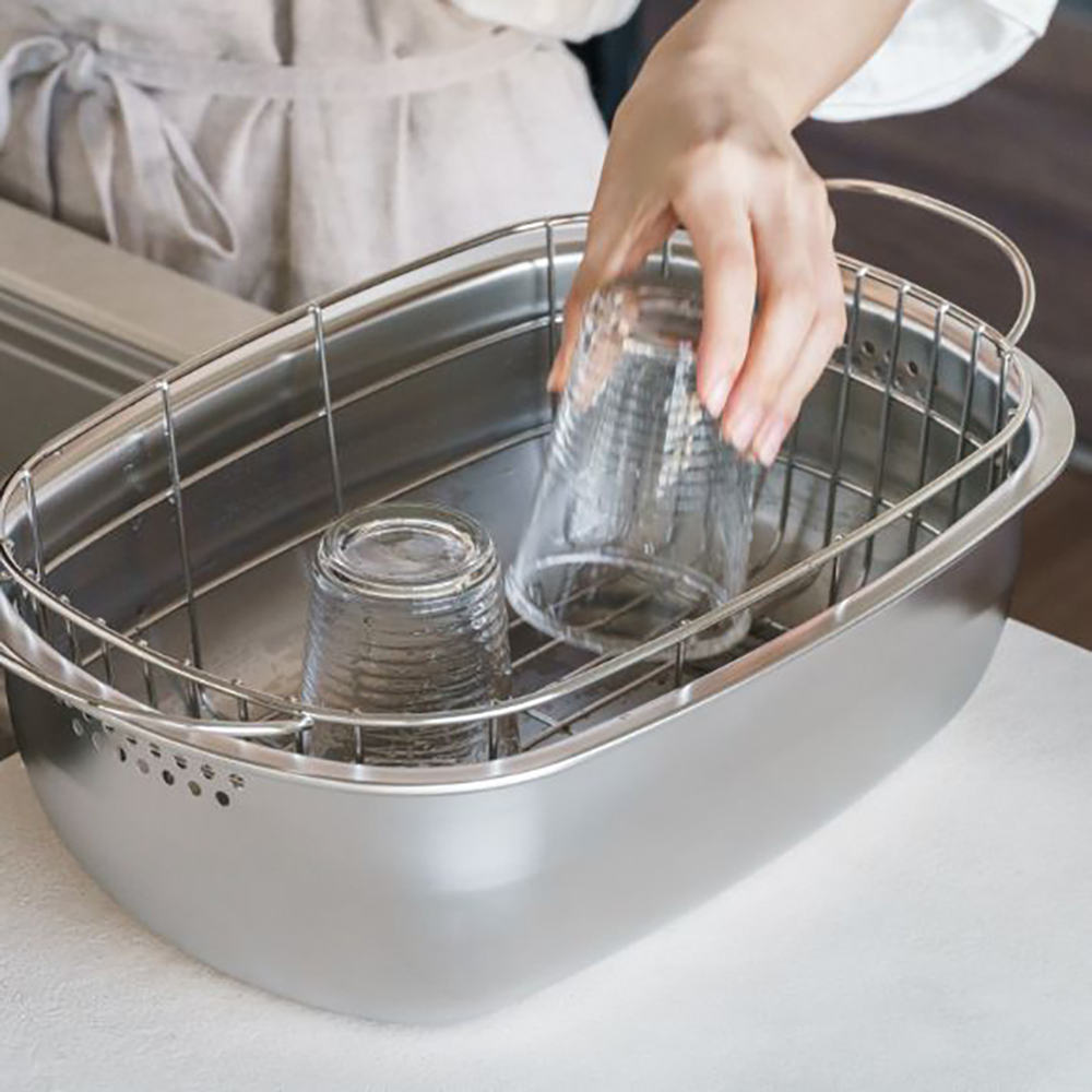可與《家事問屋》日本製304全不鏽鋼製可立式多功能蔬果/碗盤清洗盆組合使用,方便洗菜或浸泡。