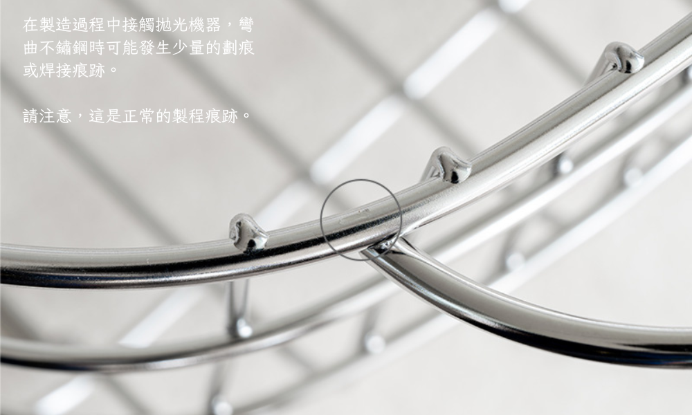 底部不鏽鋼線材間隔特殊設計,適合立放不同尺寸的碗盤,高效率瀝水及收納,也能放置在廚房桌布或吸水毛巾上使用。