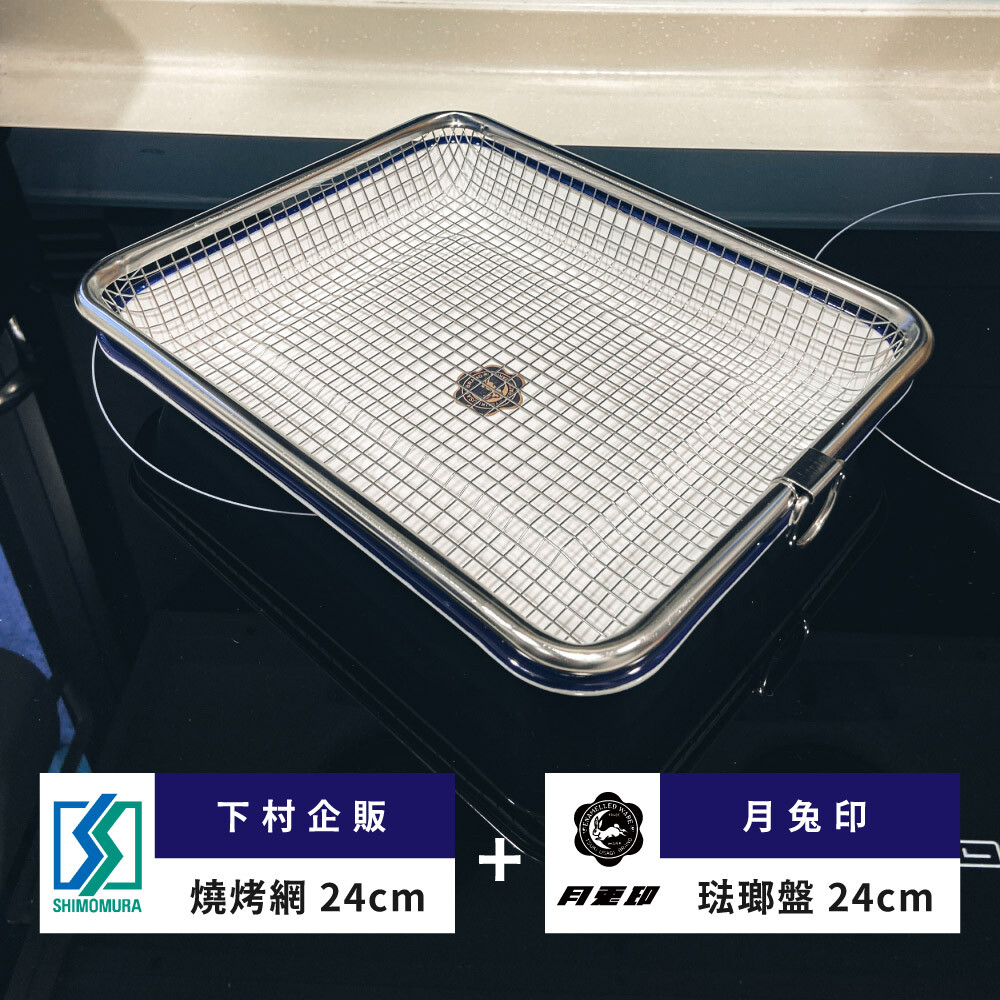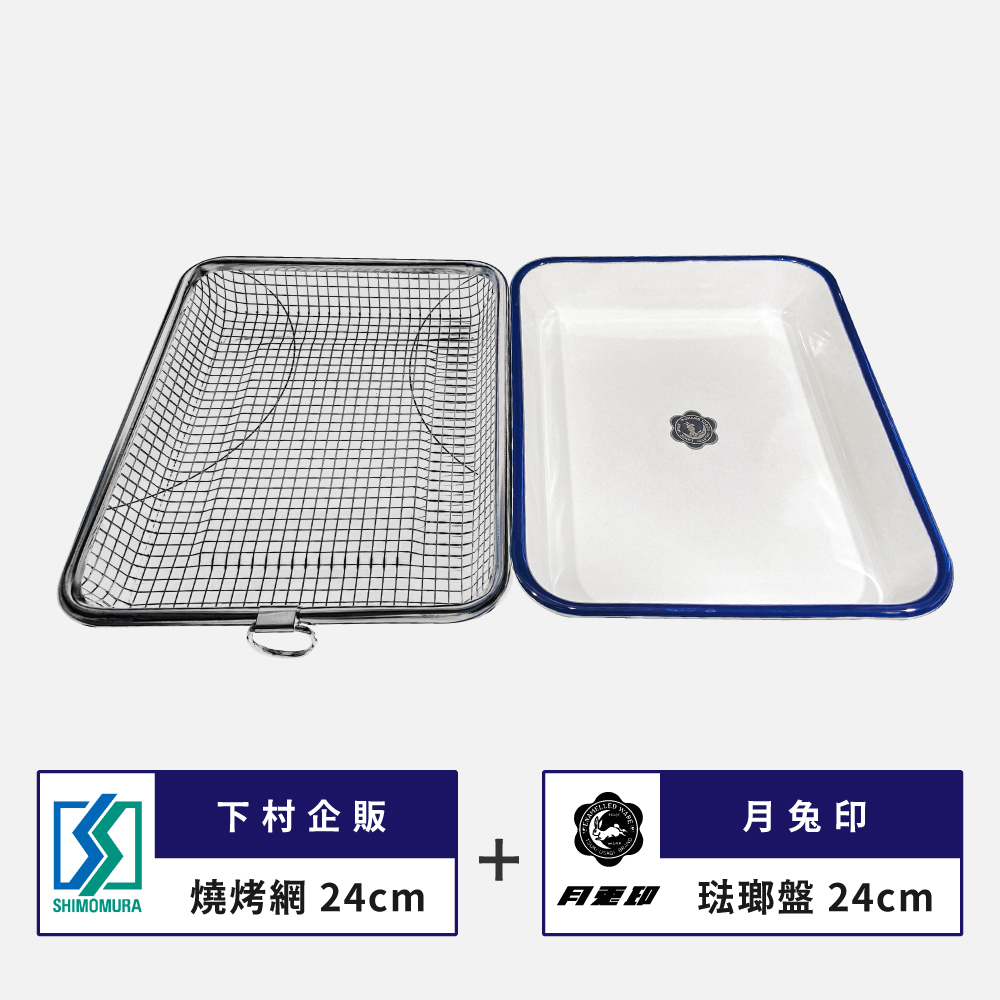 《月兔印》日本製琺瑯調理盤24.5cm+日本製304不鏽鋼瀝水網(燒烤網) 2件組