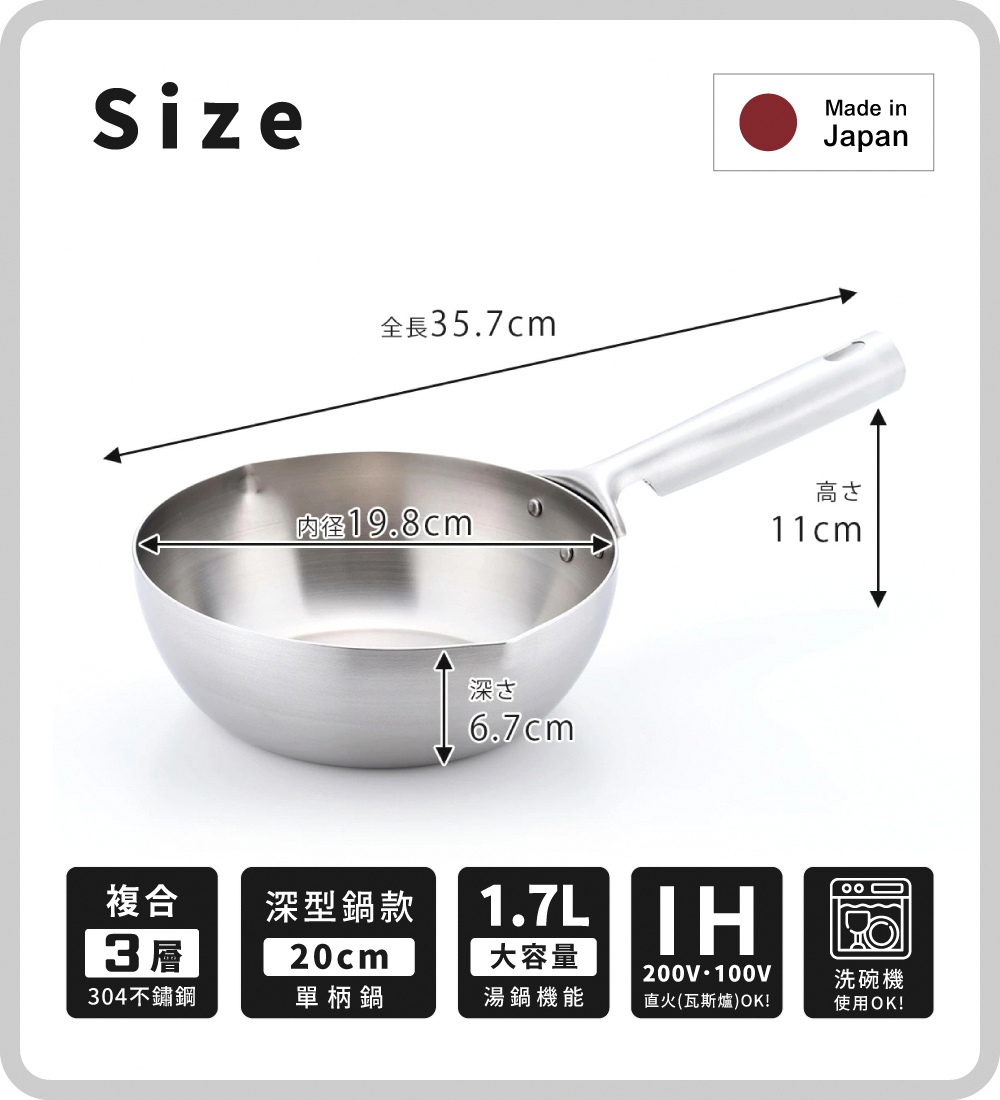 採用「三層複合不鏽鋼」鋁芯夾在不鏽鋼之間製成,除了具有優良的導熱性能,內外層皆為不鏽鋼材質,耐鏽且適合燉煮料理。