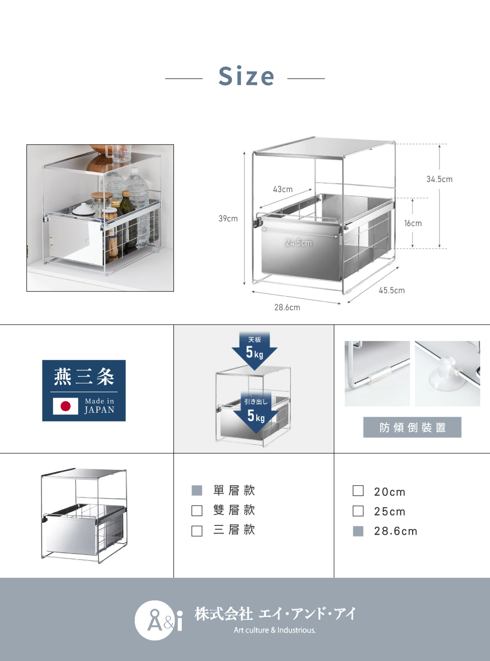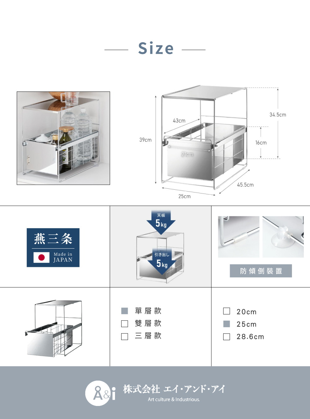 • 可徹底整理長期雜亂的水池下空間,打造高效率的收納環境。