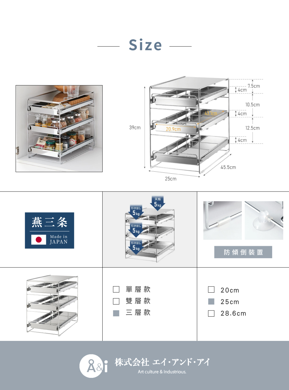 • 提供3種尺寸可選:寬20cm / 25cm / 28.5cm,可依居家空間選擇最適合的款式。