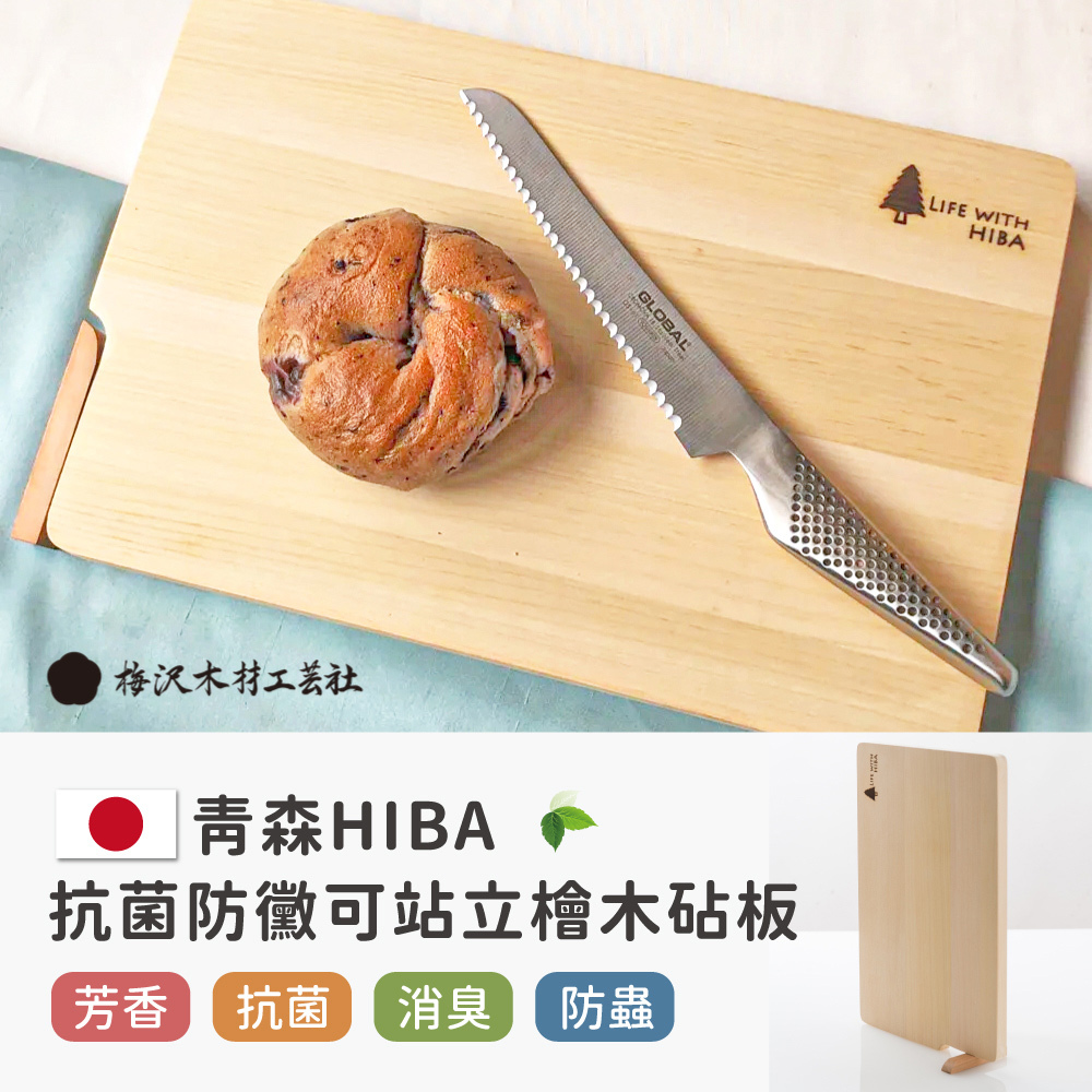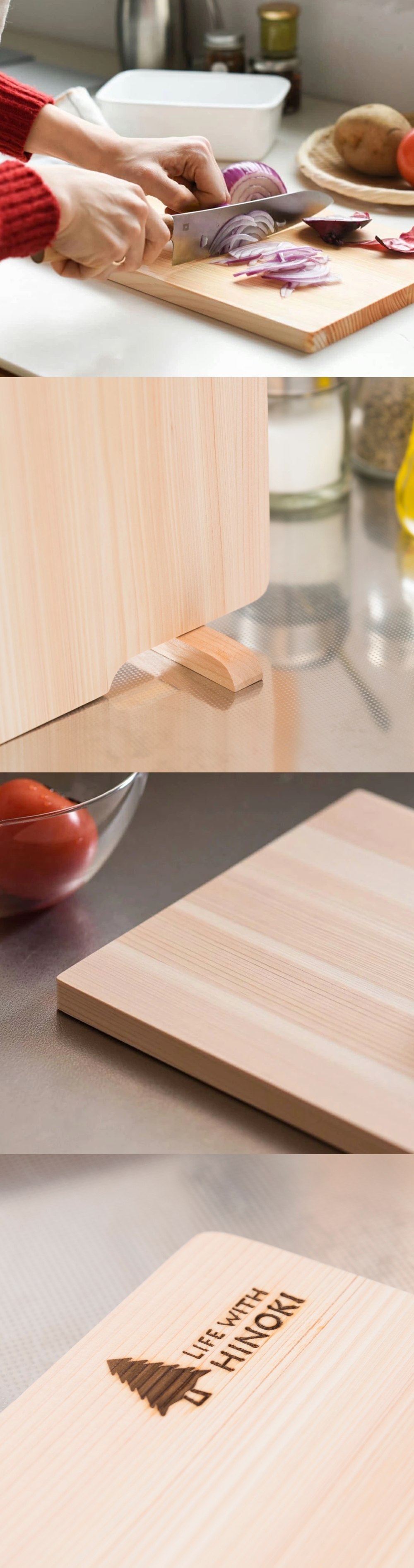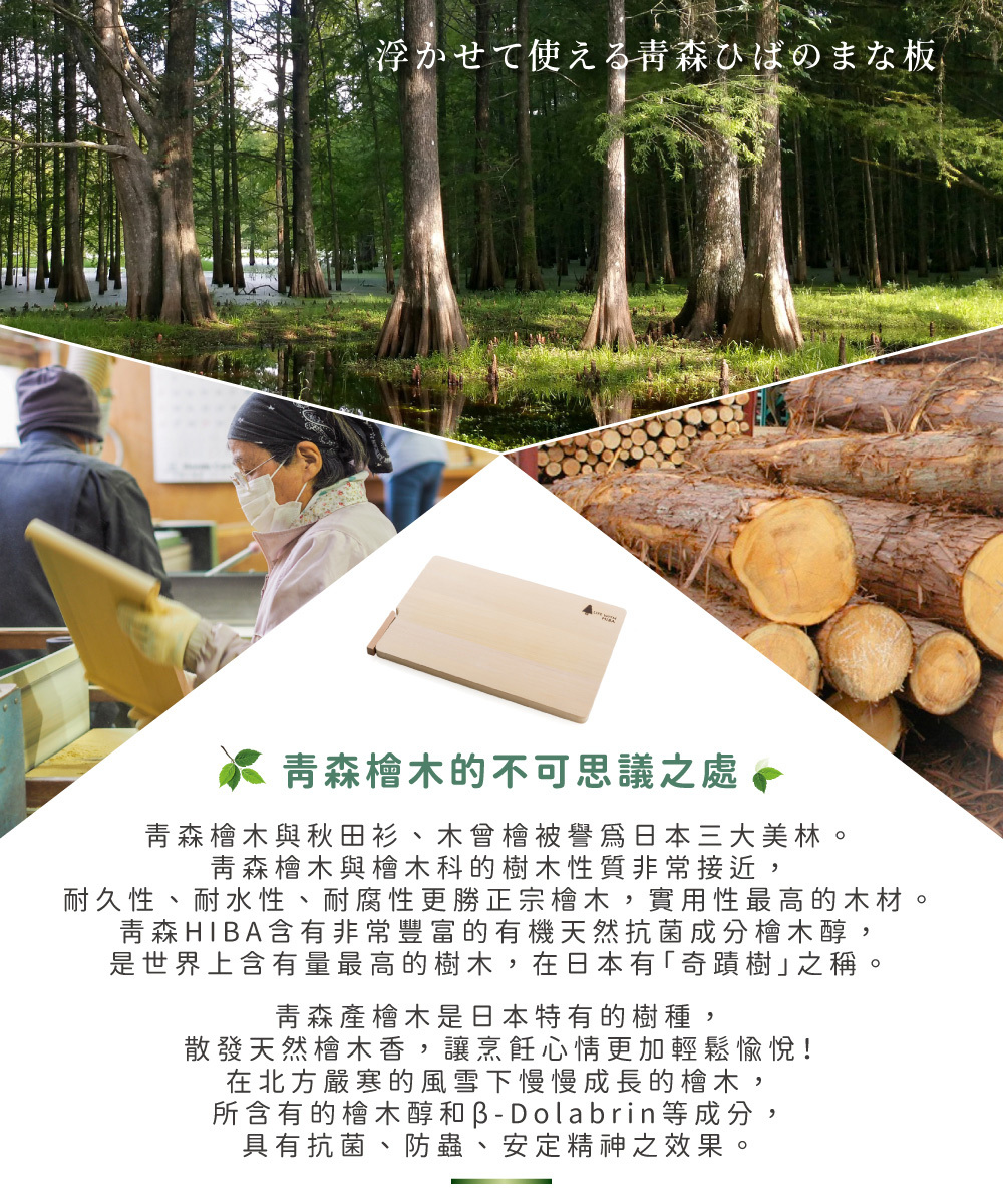 附轉角可站立檜木砧板讓砧板更快乾,100%採用天然青森檜木,具抗菌、防黴效果。