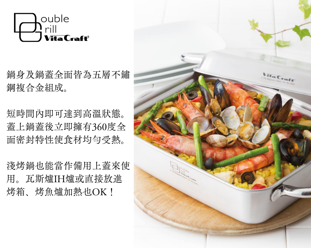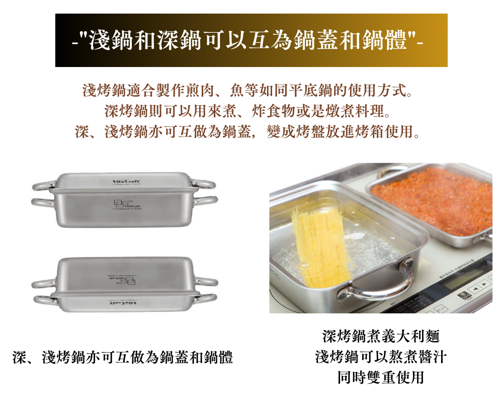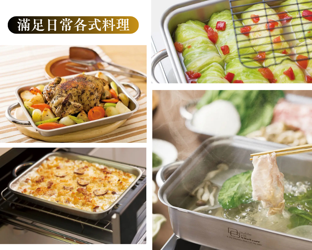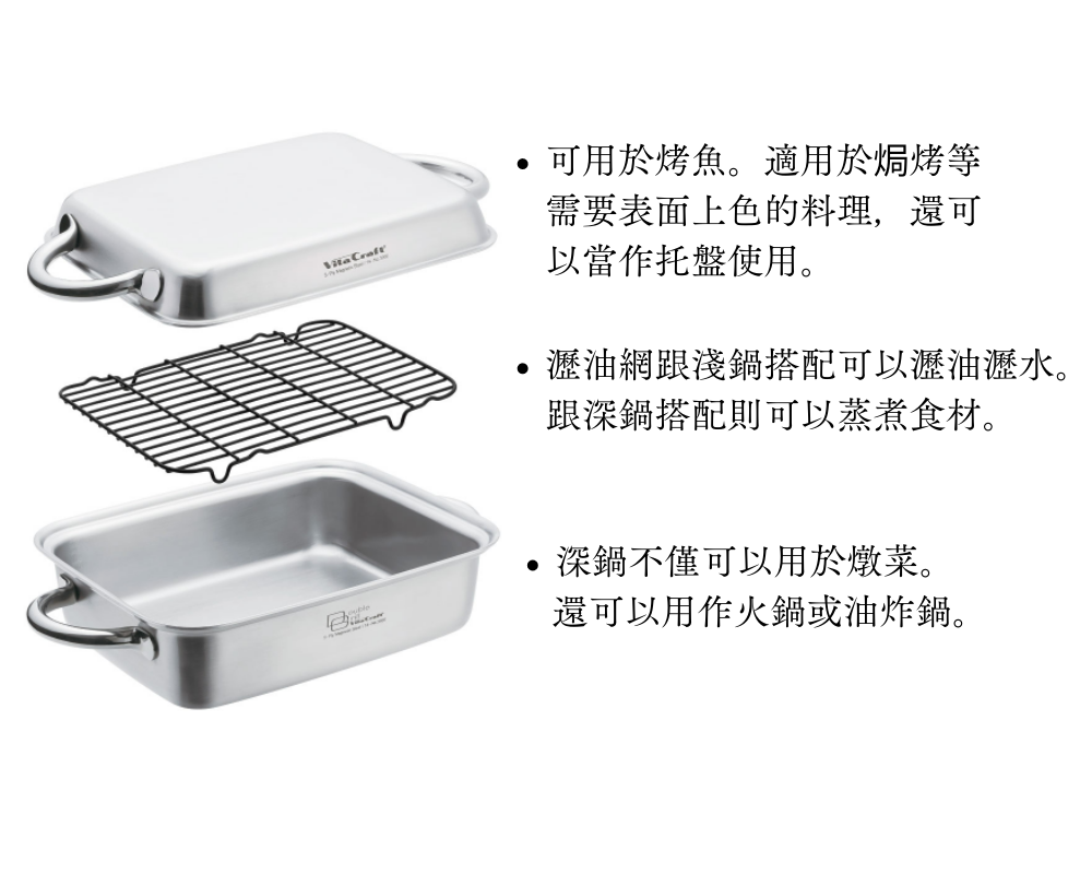 從日常料理到豐盛菜單的職人靈魂變化!知名品牌Vita Craft推出全新的五層構造方型烤鍋組合,從鍋到蓋皆可靈活運用。