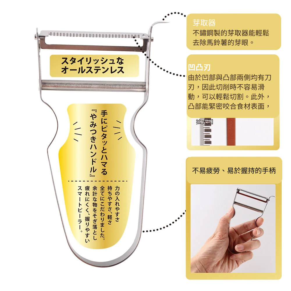 日本製的全不鏽鋼的高品質削皮刀,使用起來也相當便利!