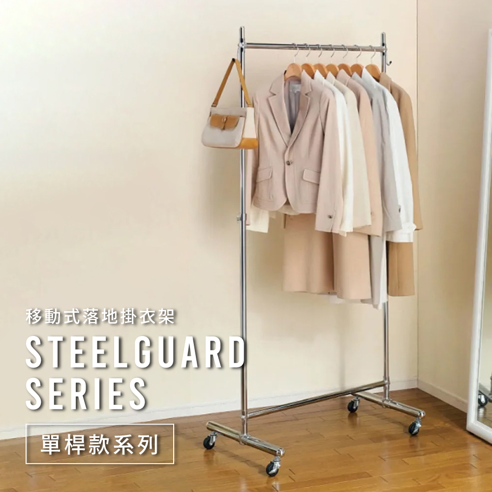 MIT台灣製 SteelGuard Series移動式落地款掛衣架 (單桿 X 固定寬90cm)