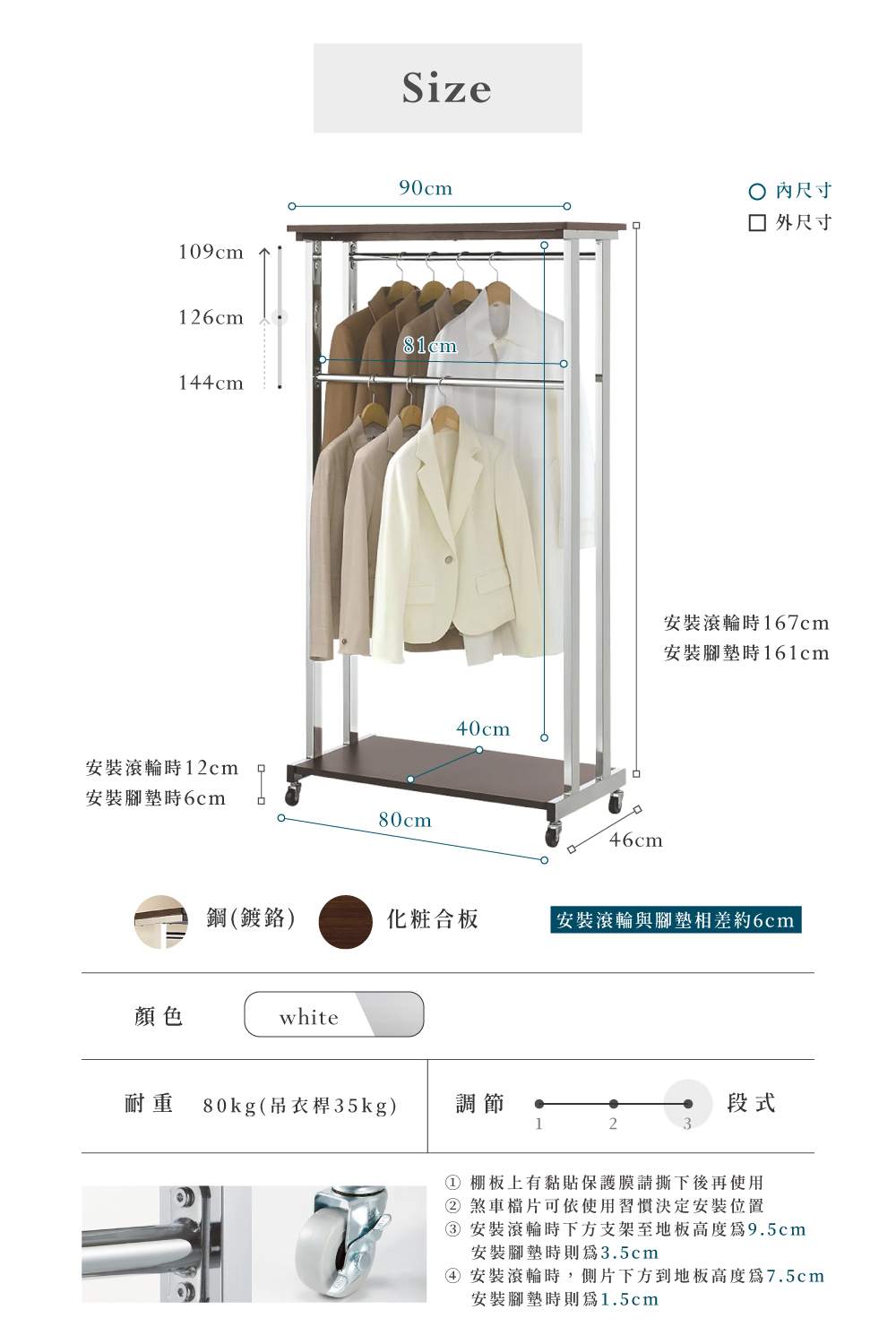 前後兩排的衣架桿,除了節省空間,也增加了約1.5倍的收納衣類量。