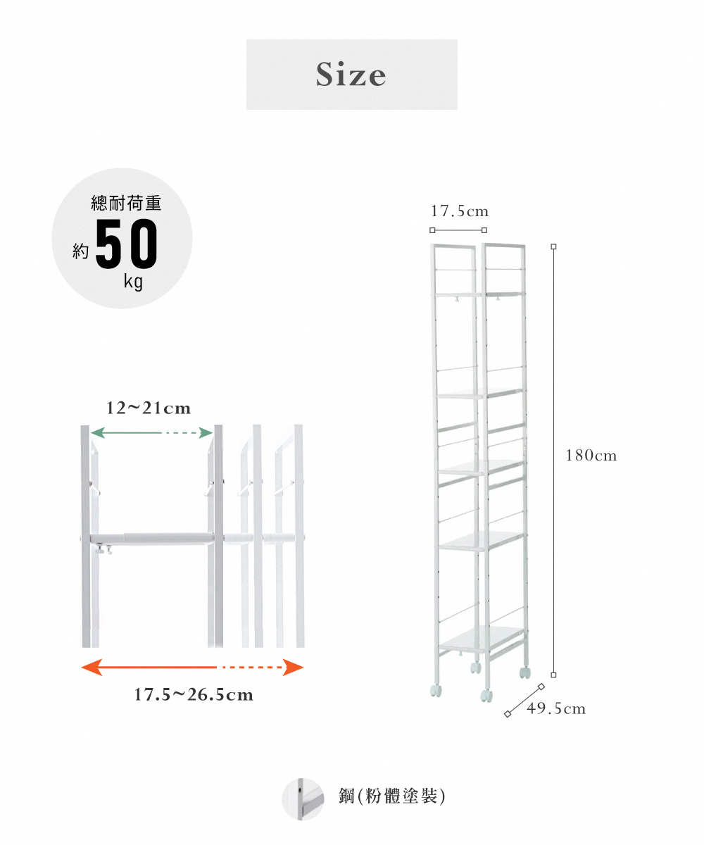 ■尺寸:全寬17.5~26.5×深49.5×高180cm