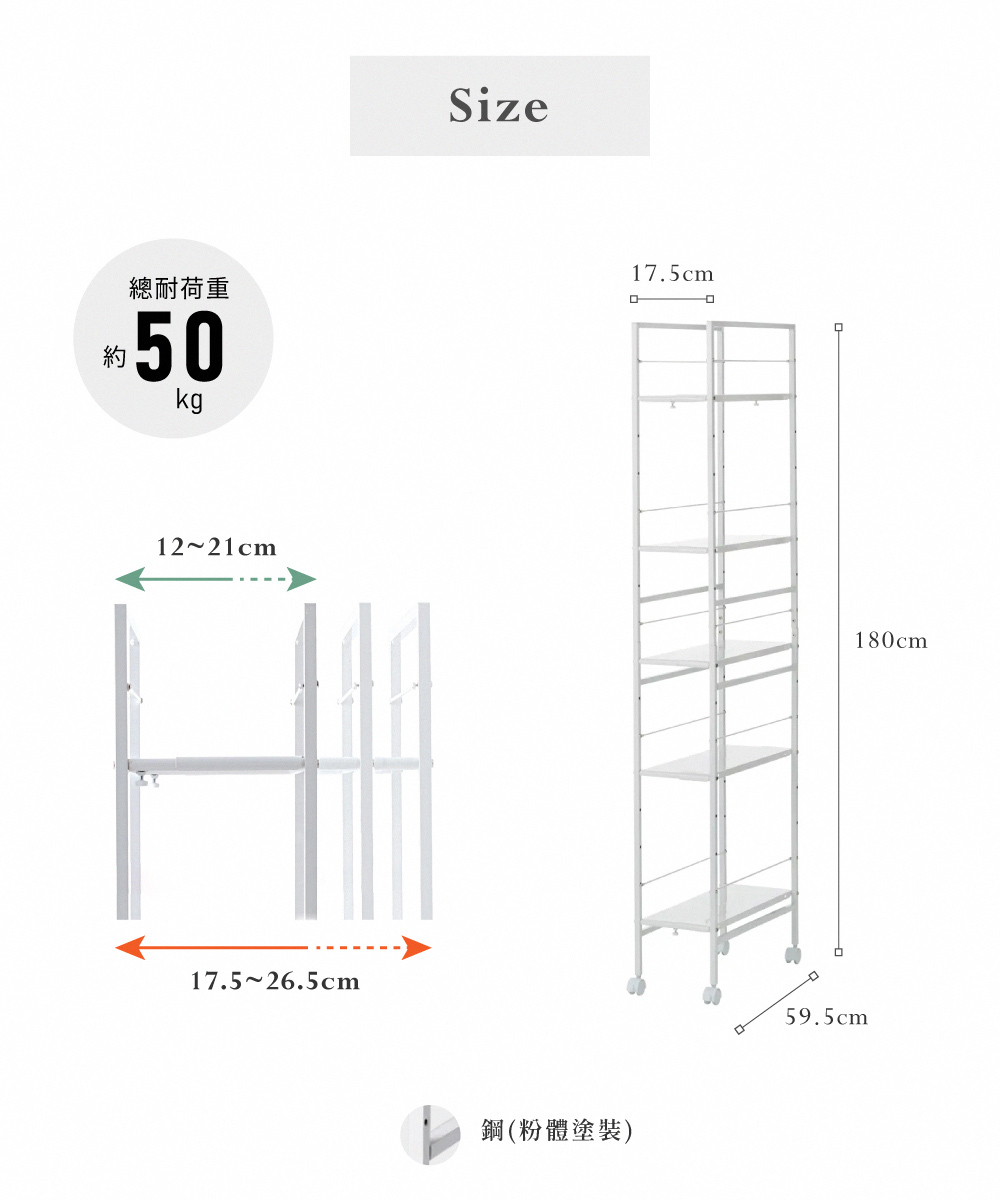 ■尺寸:全寬17.5~26.5×深59.5×高180cm