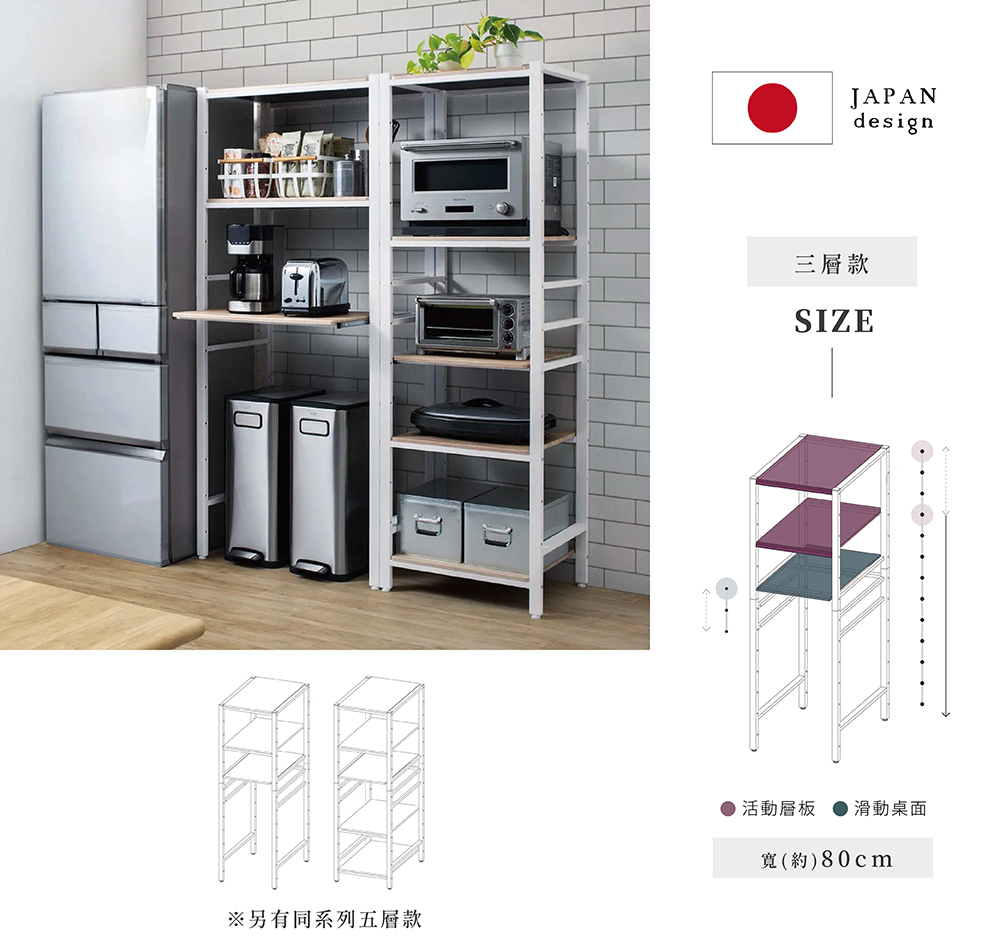 ●享受將廚房家電和調理器具,以時尚開放式收納的新樂趣。