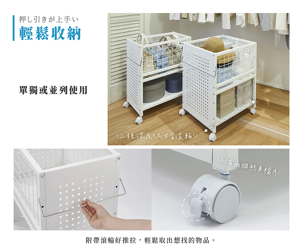 ●附帶滾輪好推拉,即使臨時想要找物品也能輕鬆地拉出取出所需物品。