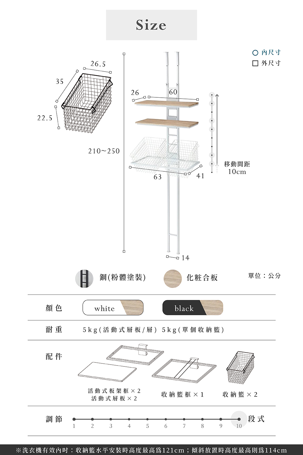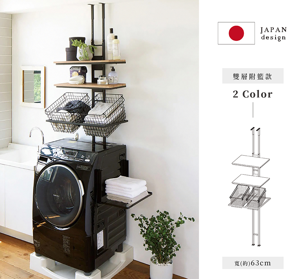 可以放在洗衣機後方或側邊,單支柱的洗衣機壁面置物架。