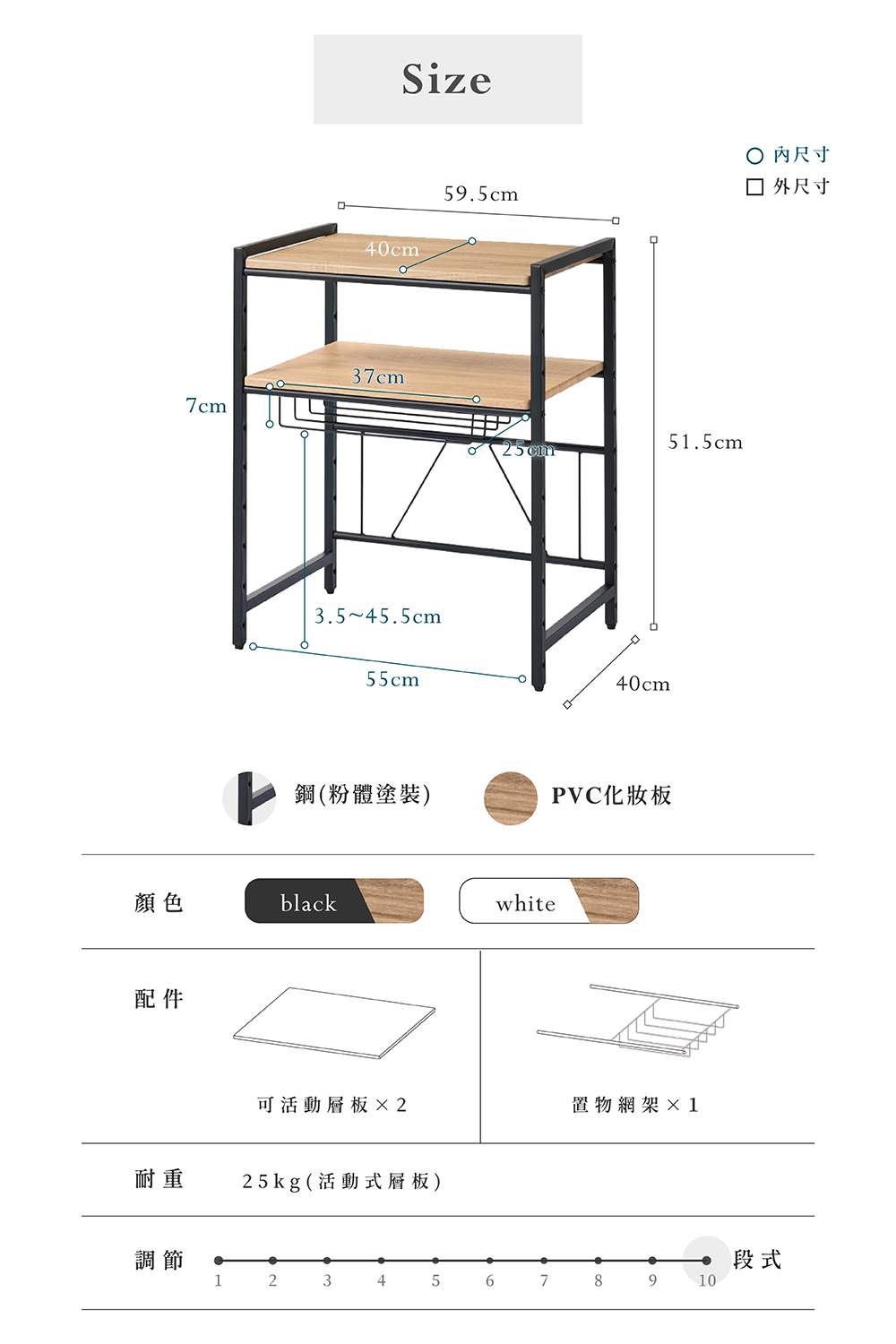 ●深度40cm,層板耐重25kg,背面加固框架結構更堅固耐用,能夠輕鬆放置廚房家電。