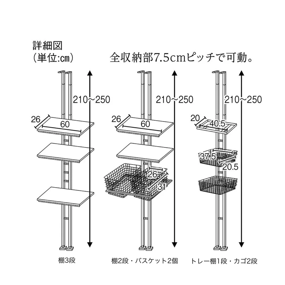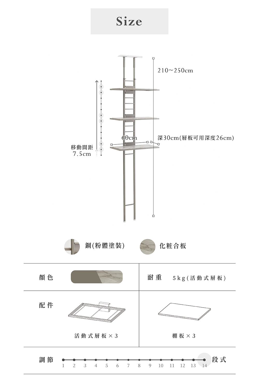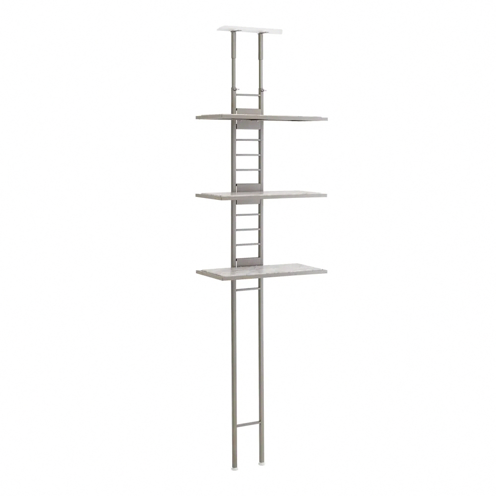 安心的天花板支撐式置物架,單柱支撐設計,可簡單設置於多種托架底座。