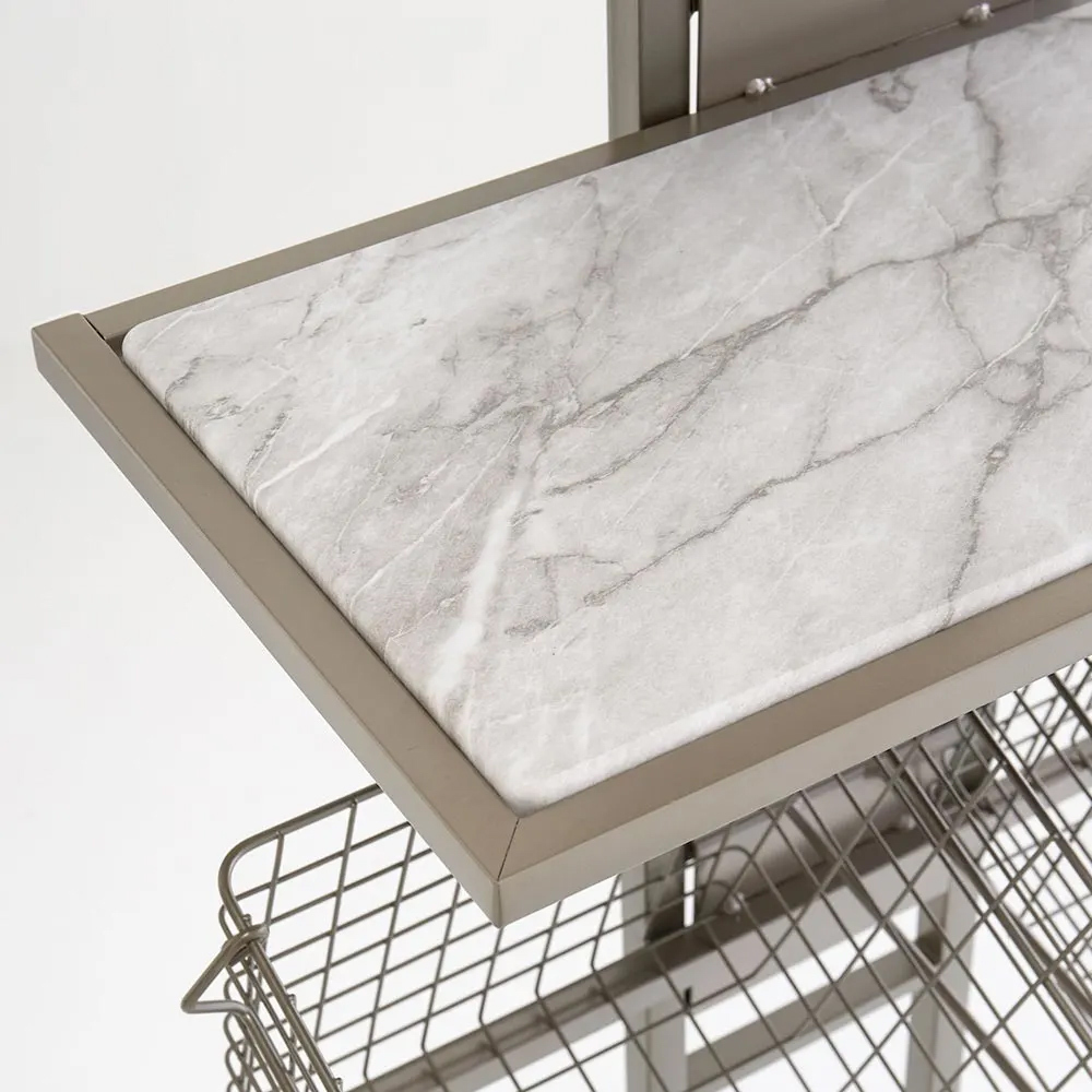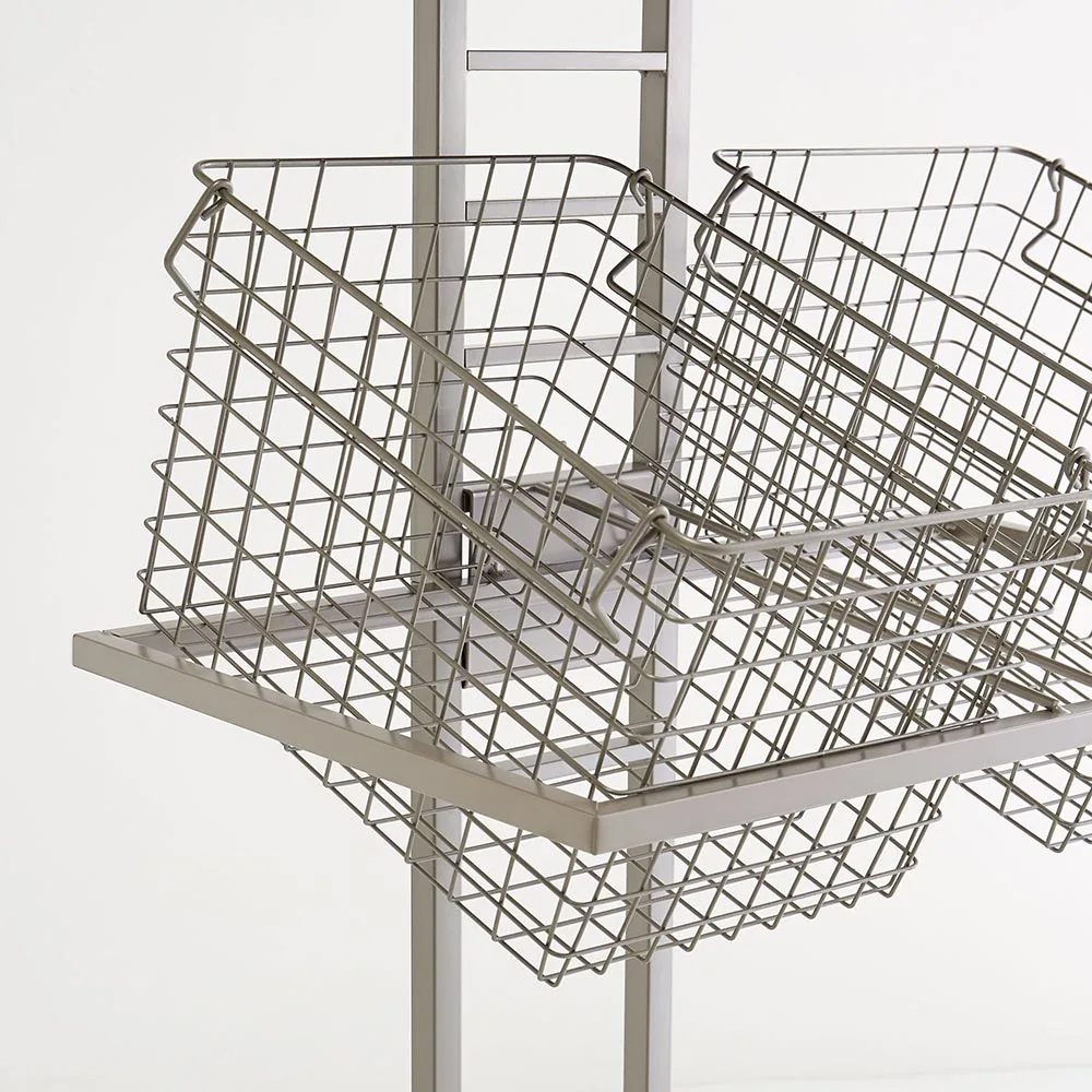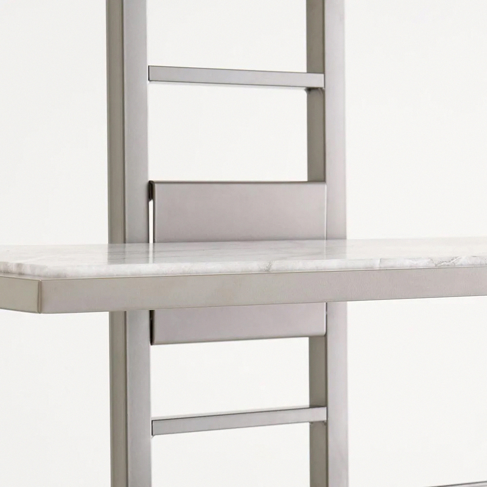 以啞光沉穩的細微銀色呈現,打造如同飯店洗衣空間的壁面置物架。