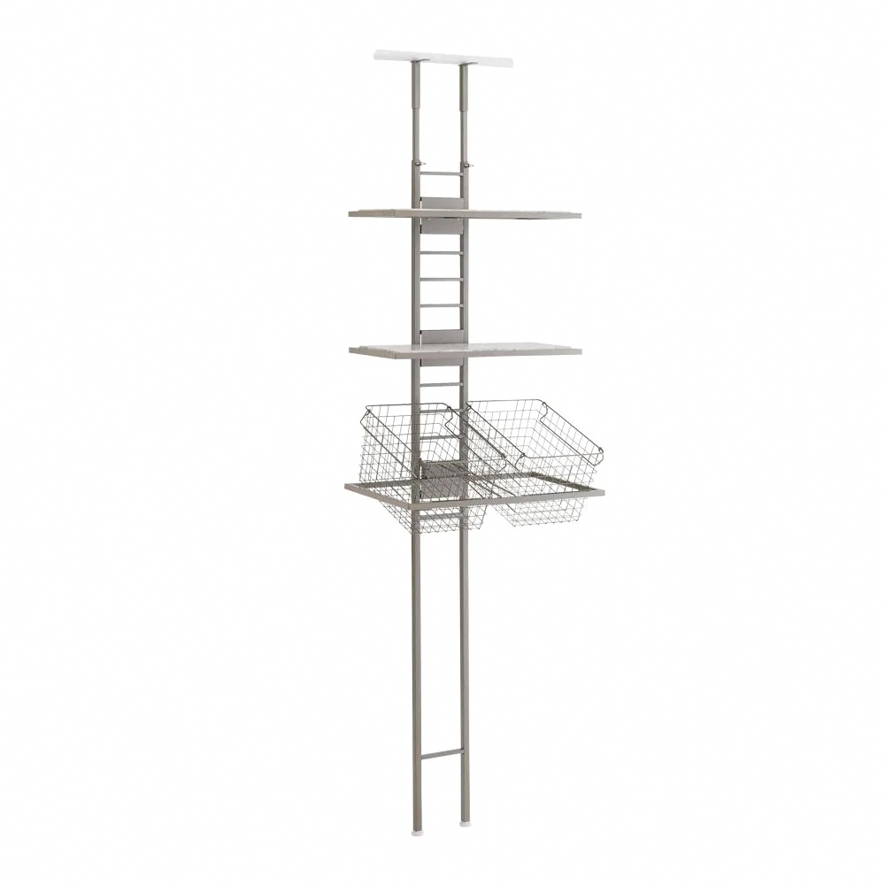 安心的天花板支撐式置物架,單柱支撐設計,可簡單設置於多種托架底座。