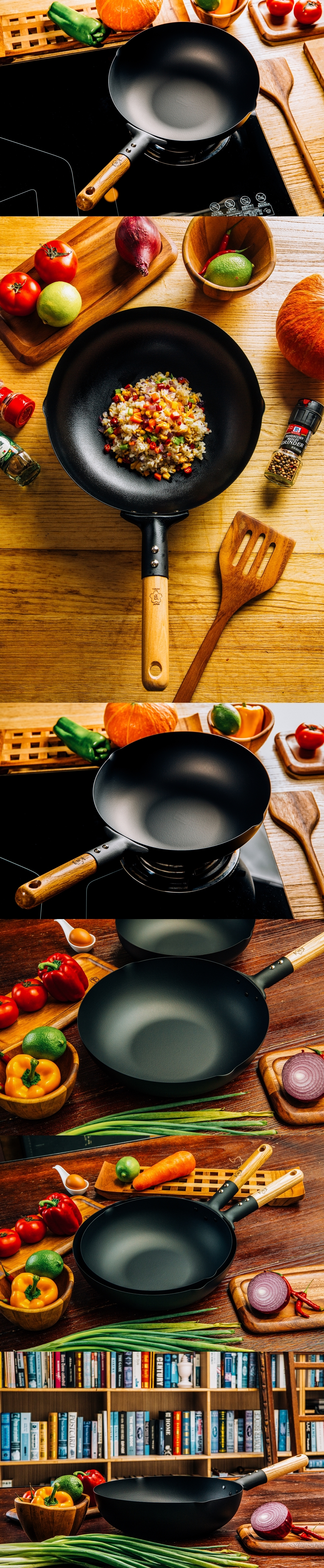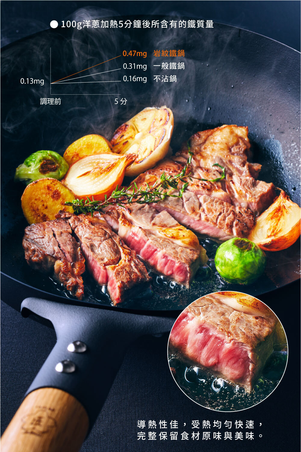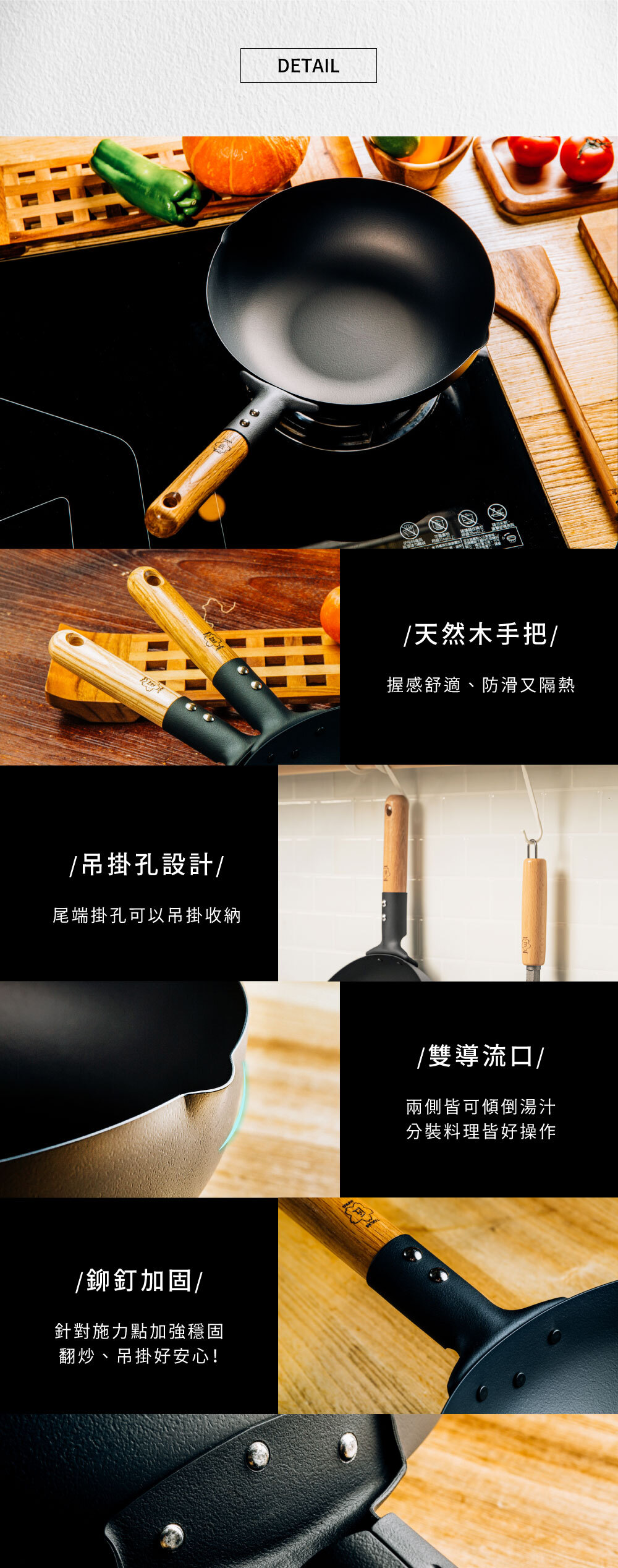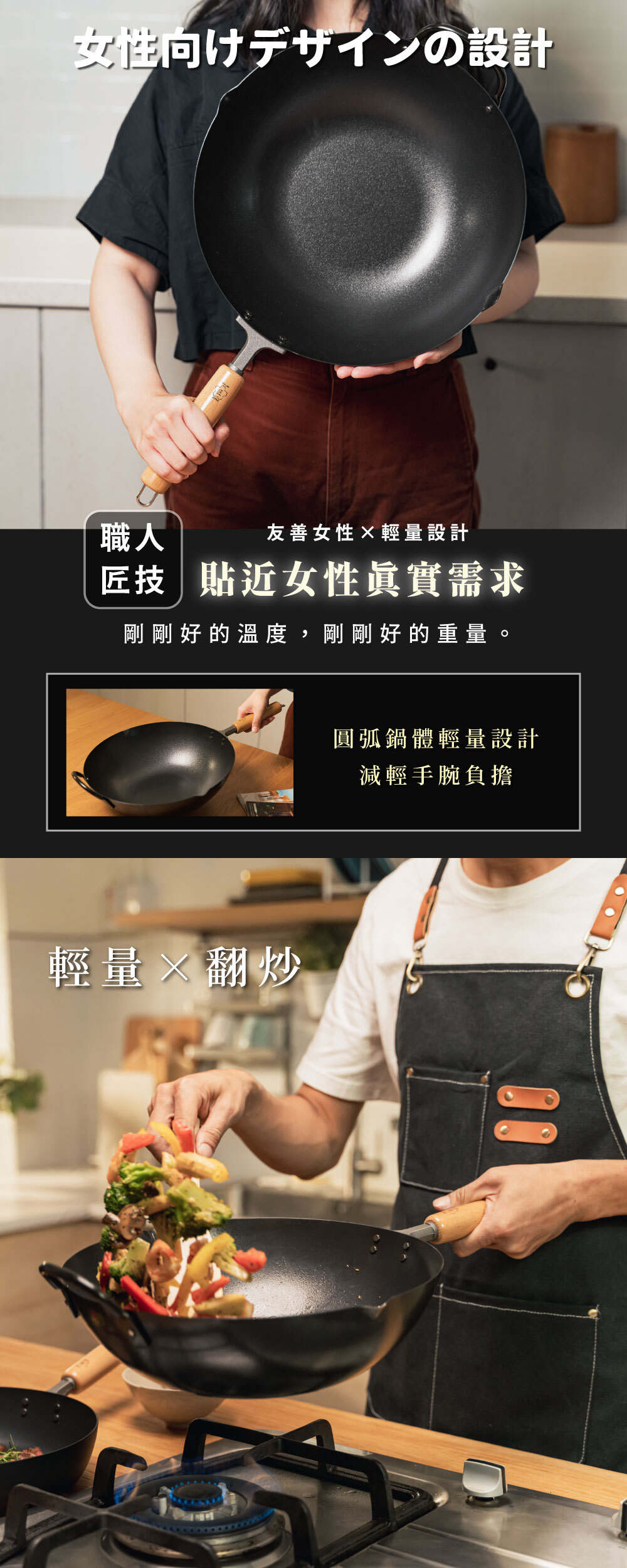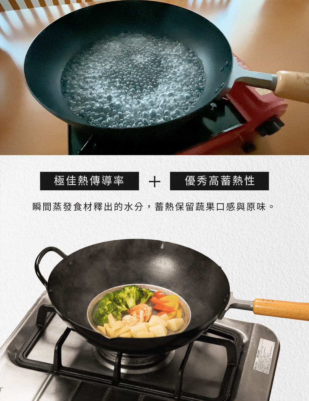 炒物最適合的鐵鍋,受熱均勻快速,完整保留食材原味與美味,鍋體因具有深度也適合調理食材較多的料理。