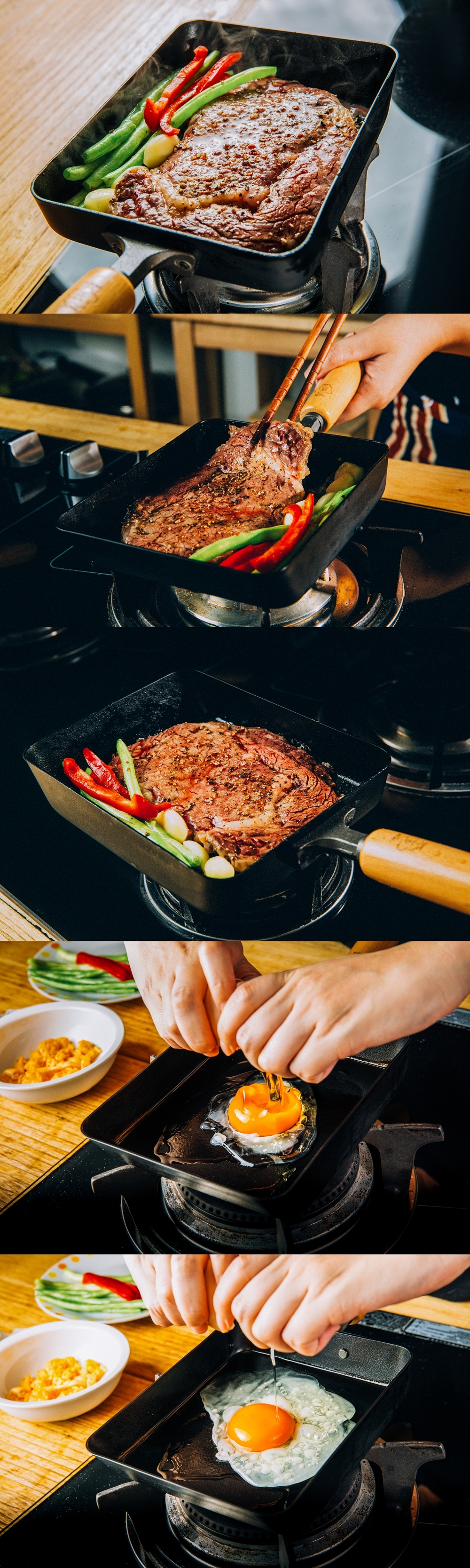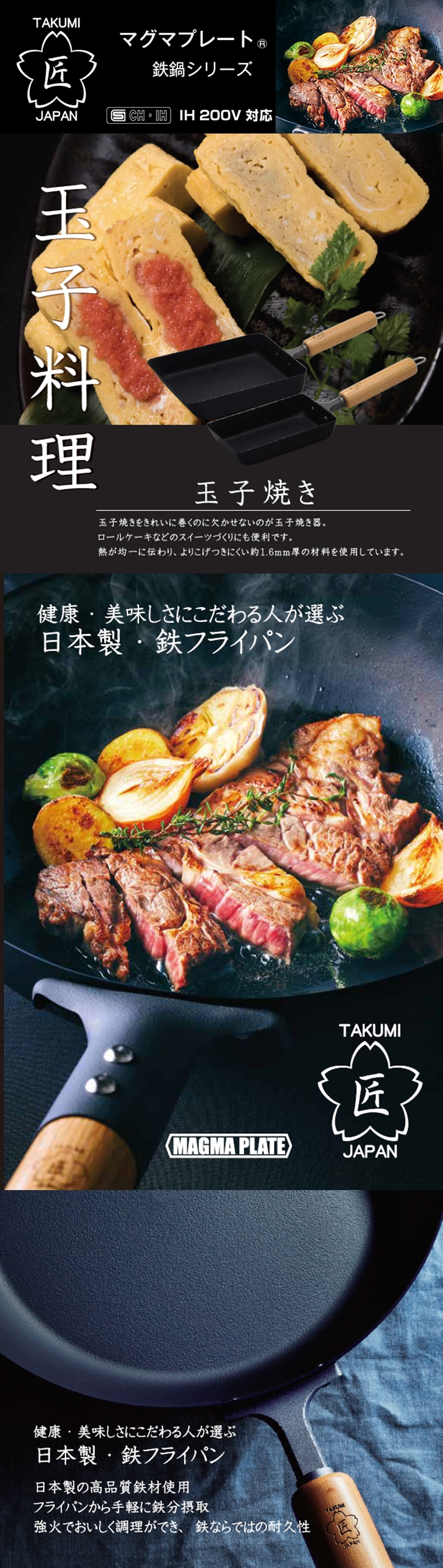 想料理出蓬鬆軟嫩日式玉子燒不可或缺的鐵製玉子燒鍋,導熱性佳受熱均勻,底厚約1.6mm,除了料理美麗的日式蛋捲,製作甜點也很適合。