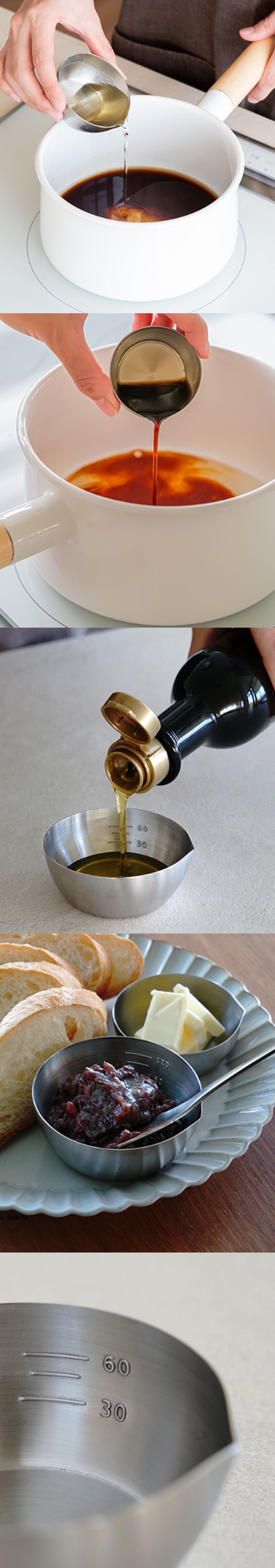調理碗內外皆有容量標示,附有嘴口好倒出,適合用來分裝少量的調味料!